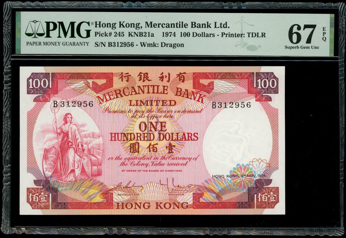 Mercantile Bank Limited, $100, 4.11.1974, serial number B312956, (Pick 245), PMG 67EPQ Superb Gem Uncirculated