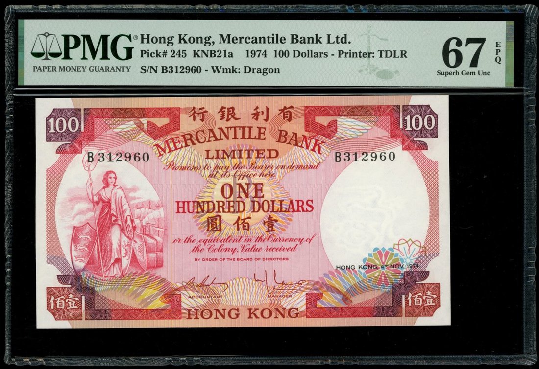 Mercantile Bank Limited, $100, 4.11.1974, serial number B312960, (Pick 245), PMG 67EPQ Superb Gem Uncirculated