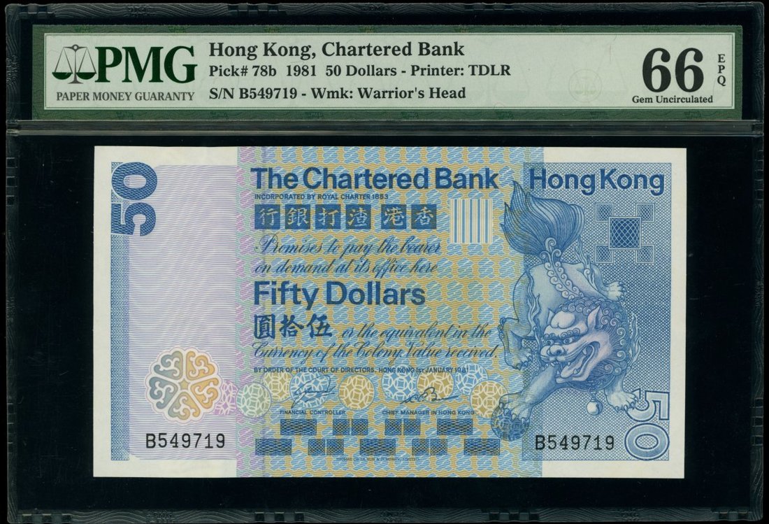 The Chartered Bank, $50, 1.1.1981, B549719, (Pick 78b), PMG 66EPQ Gem Uncirculated