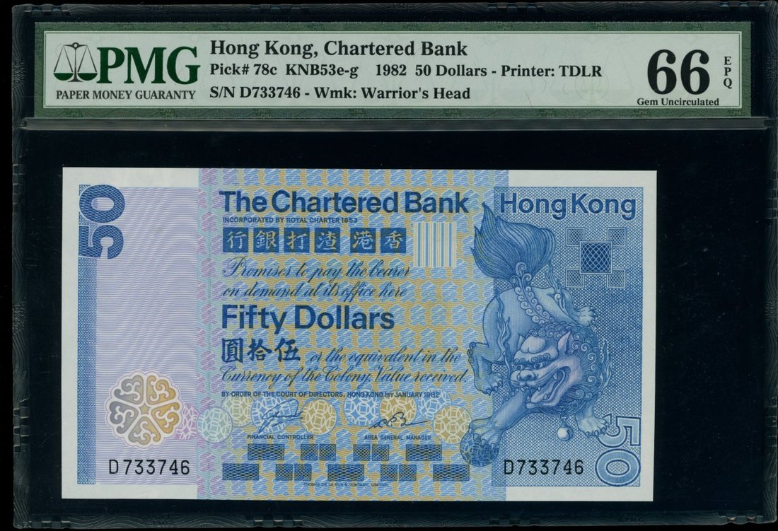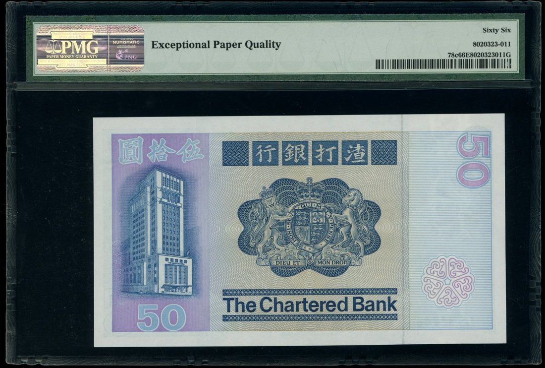 The Chartered Bank, $50, 1.1.1982, D733746, (Pick 78c), PMG 66EPQ Gem Uncirculated