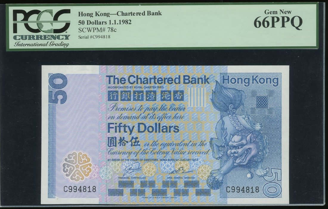 The Chartered Bank, $50, 1.1.1982, serial number C994818, (Pick 78c), PCGS Currency 66PPQ Gem New