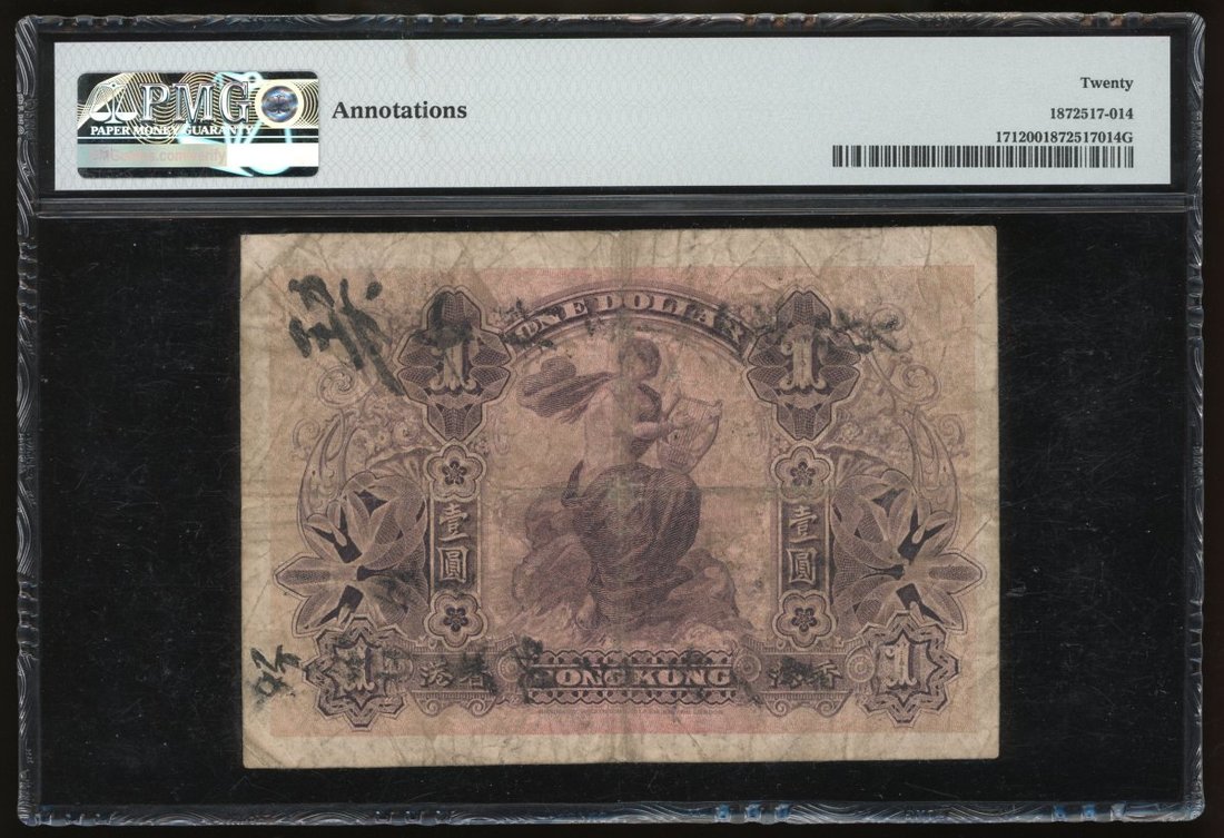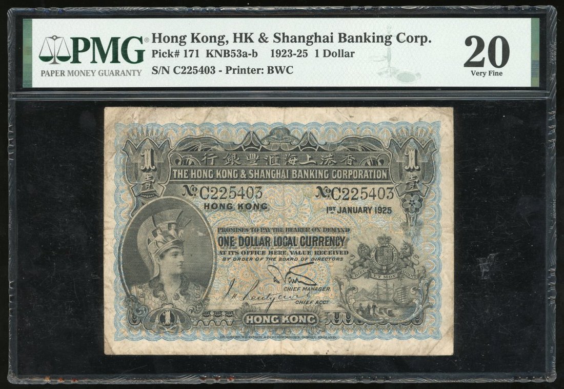 The Hongkong and Shanghai Banking Corporation, $1, 1.1.1925, serial number C225403, (Pick 171), PMG 20 Very Fine (Annotations).
