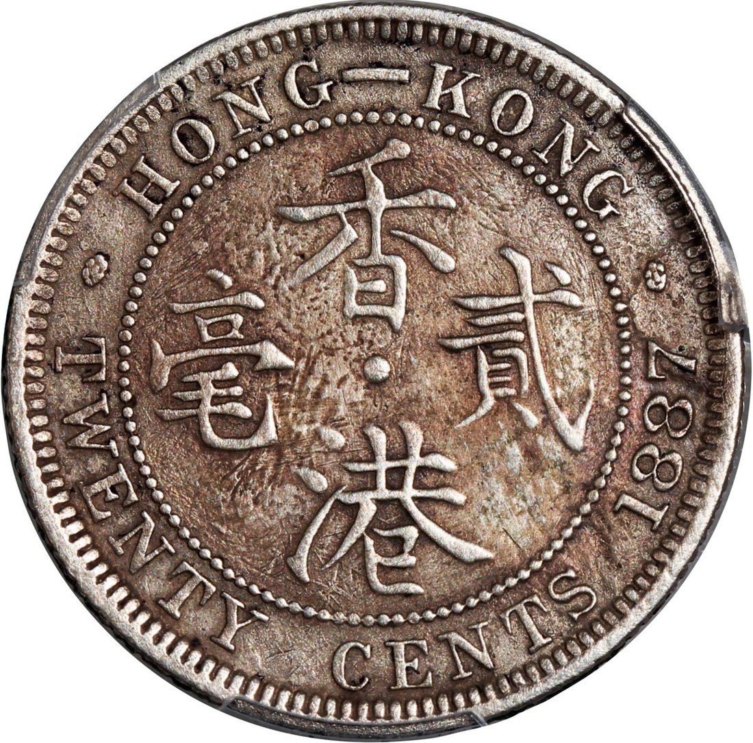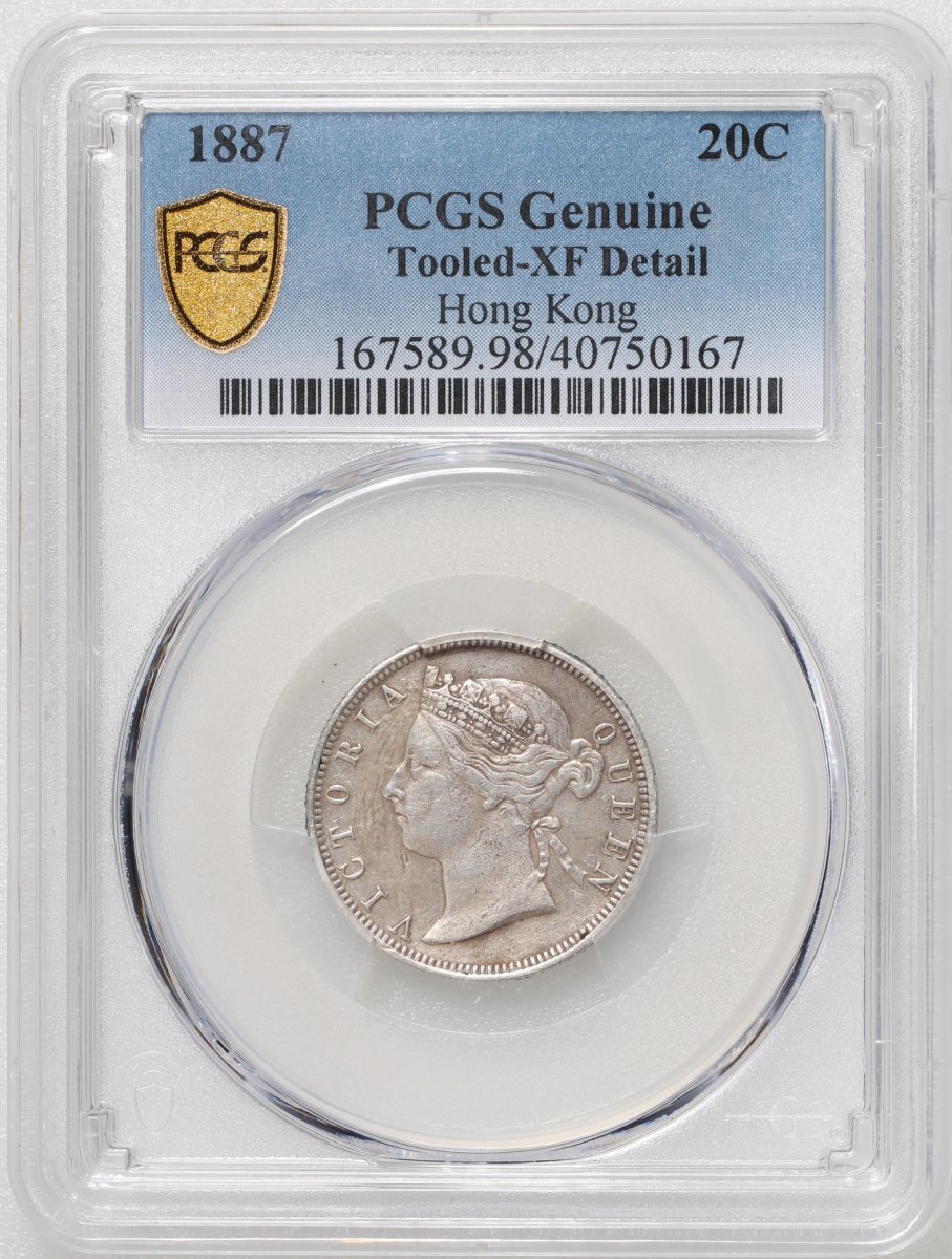 Hong Kong, silver 20 cents, 1887, PCGS XF Detail (Tooled), #40750167