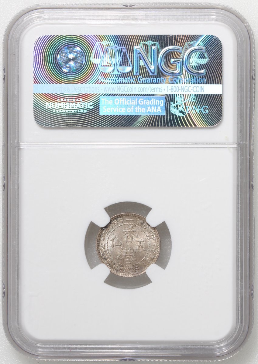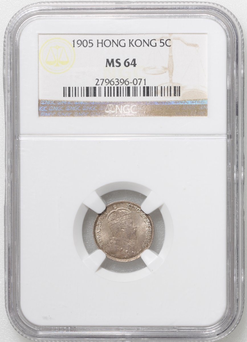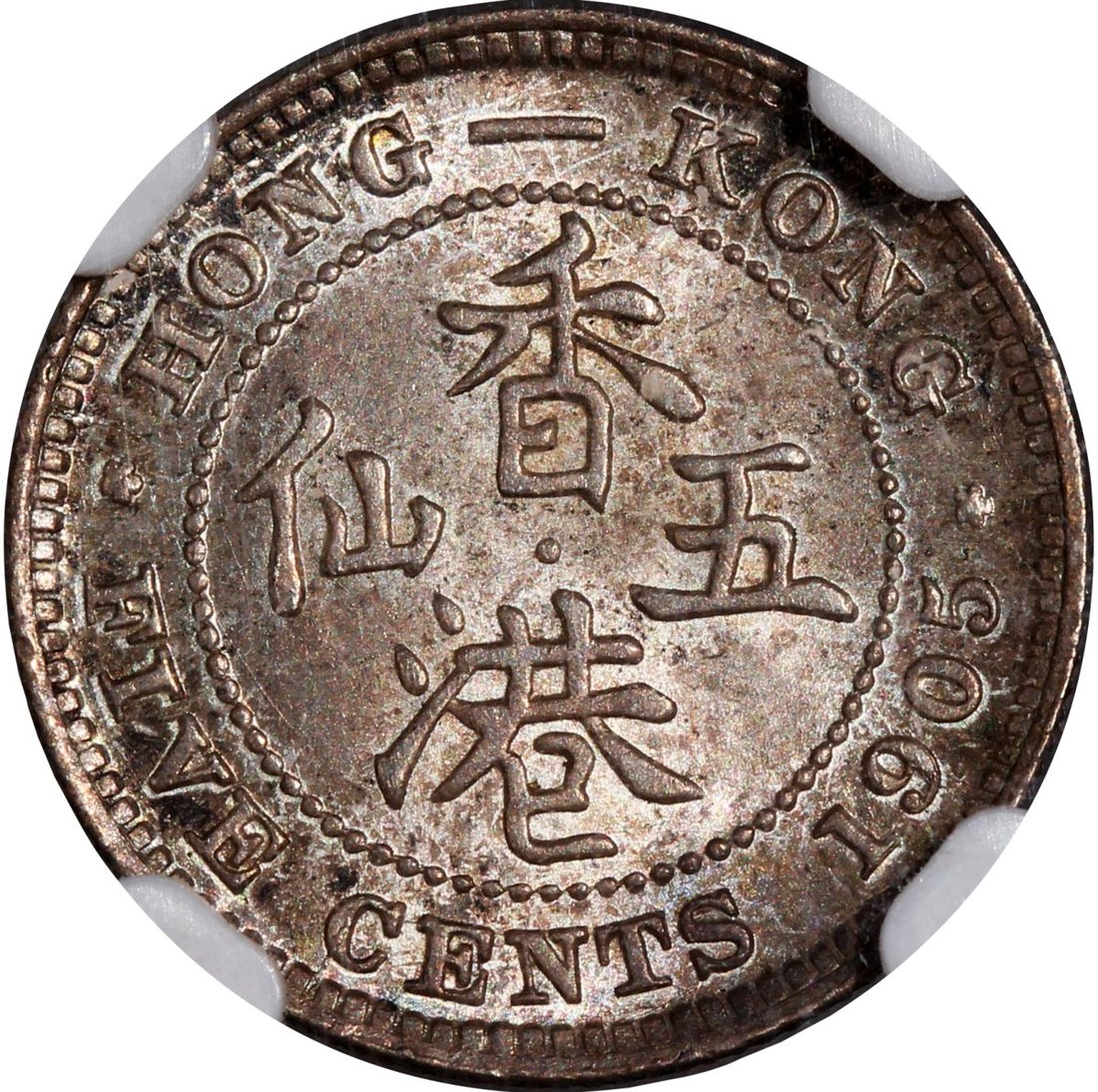 Hong Kong, silver 5 cents, 1905, NGC MS64, #2796396-071