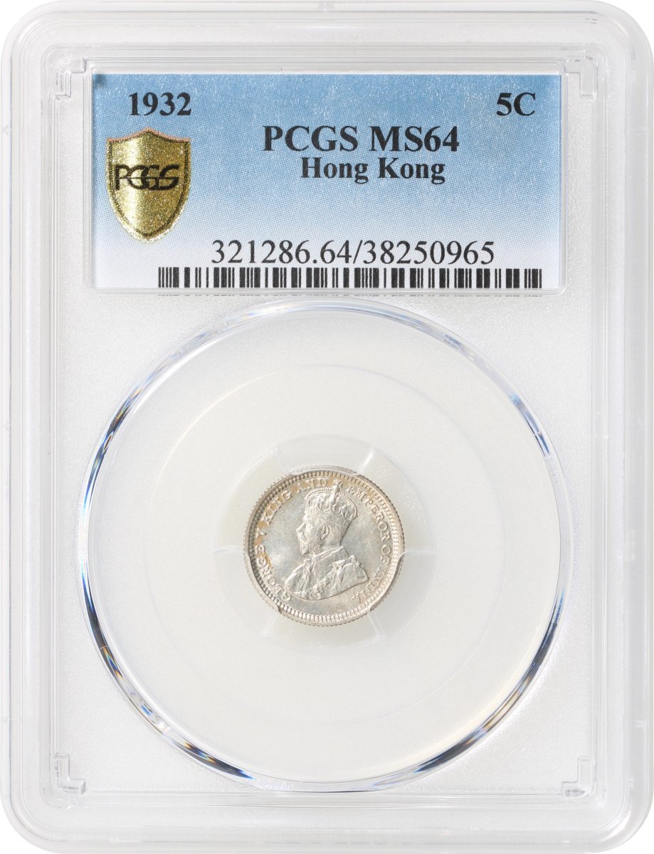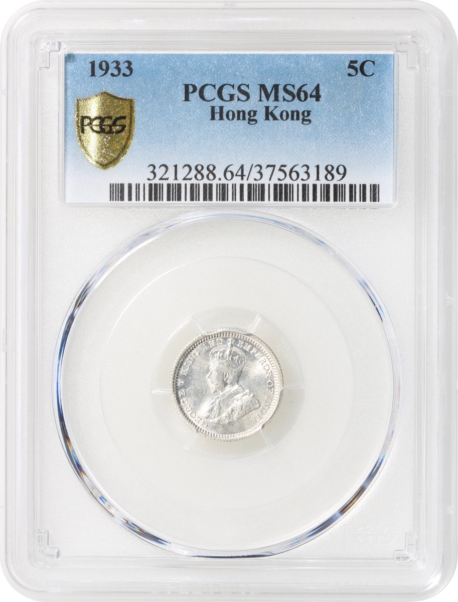 Hong Kong, a pair of silver 5 cents, 1932 and 1933, both graded PCGS MS64.(2) #38250965, #37563189