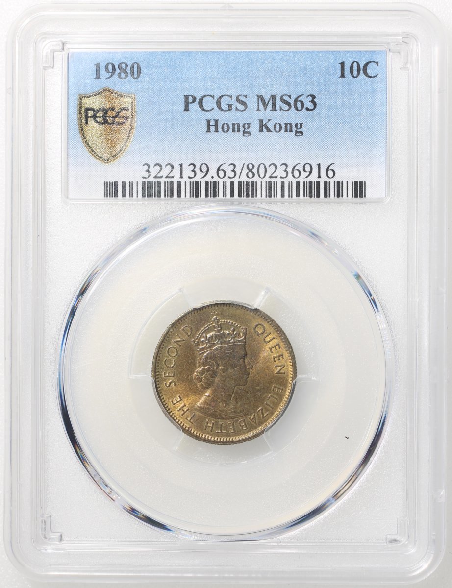 Hong Kong, brass 10 cents, 1980, PCGS MS 63 #80236916