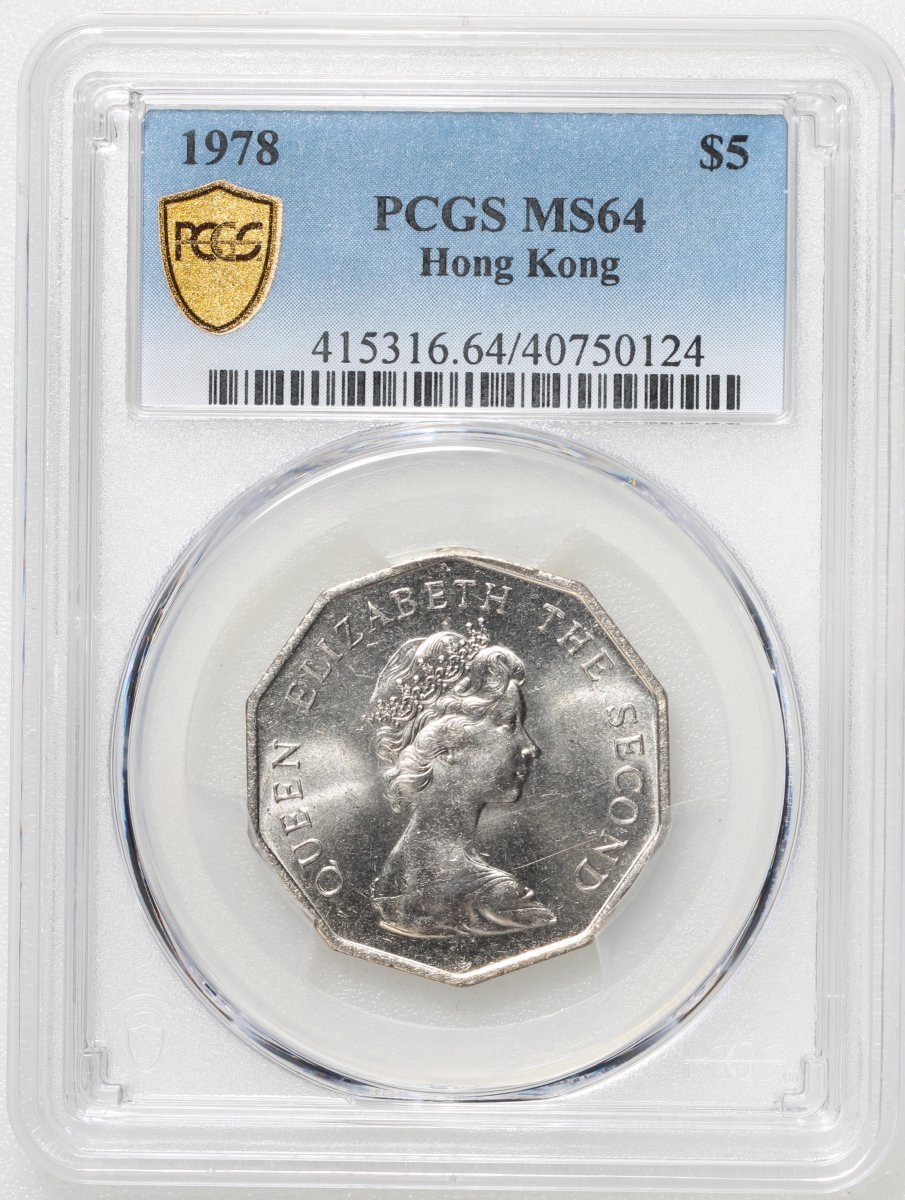Hong Kong, cupro nickel $5, 1976 and 1978, graded PCGS MS63 and MS64, #4750123 and 40750124 (2)