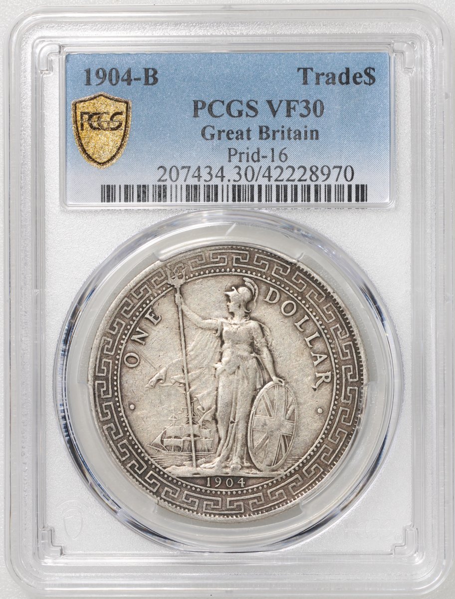 Great Britain, silver $1, 1904-B, trade dollar, PCGS VF30. #42228970