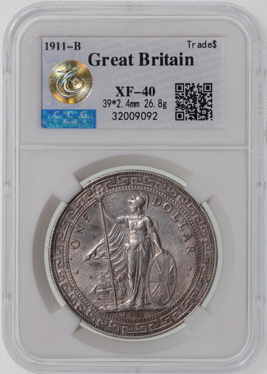 Great Britain, a pair of silver trade dollars, 1910B and 1911B, graded Zhong Qian XF and XF40 respectively (2)