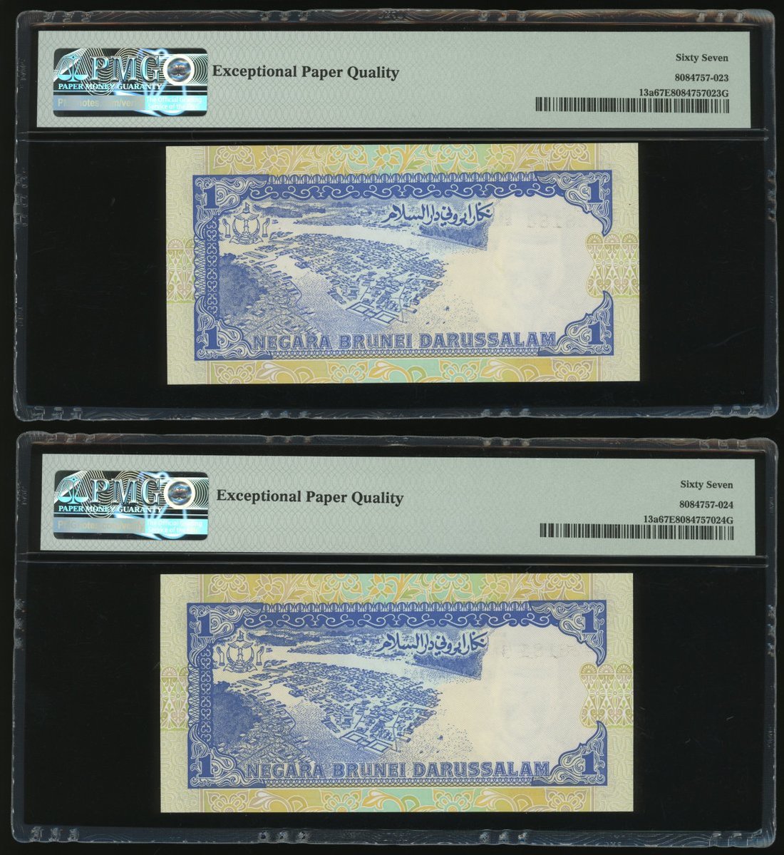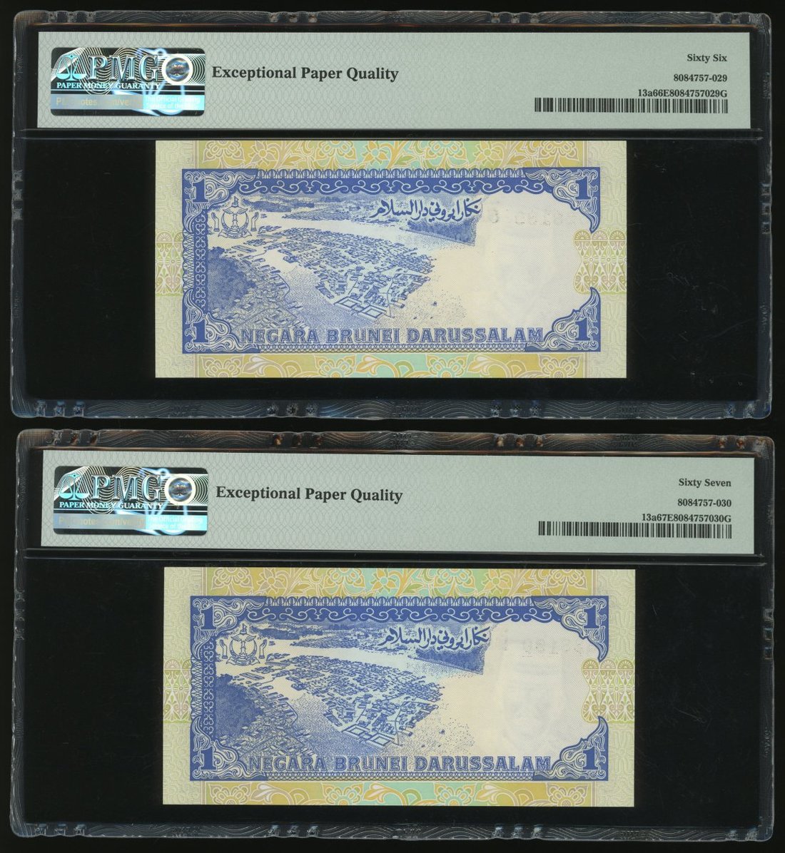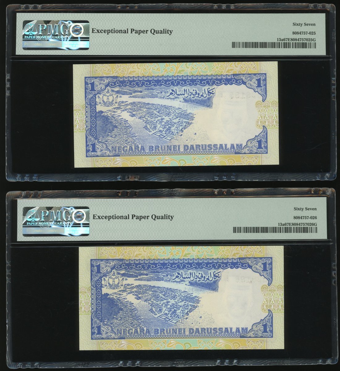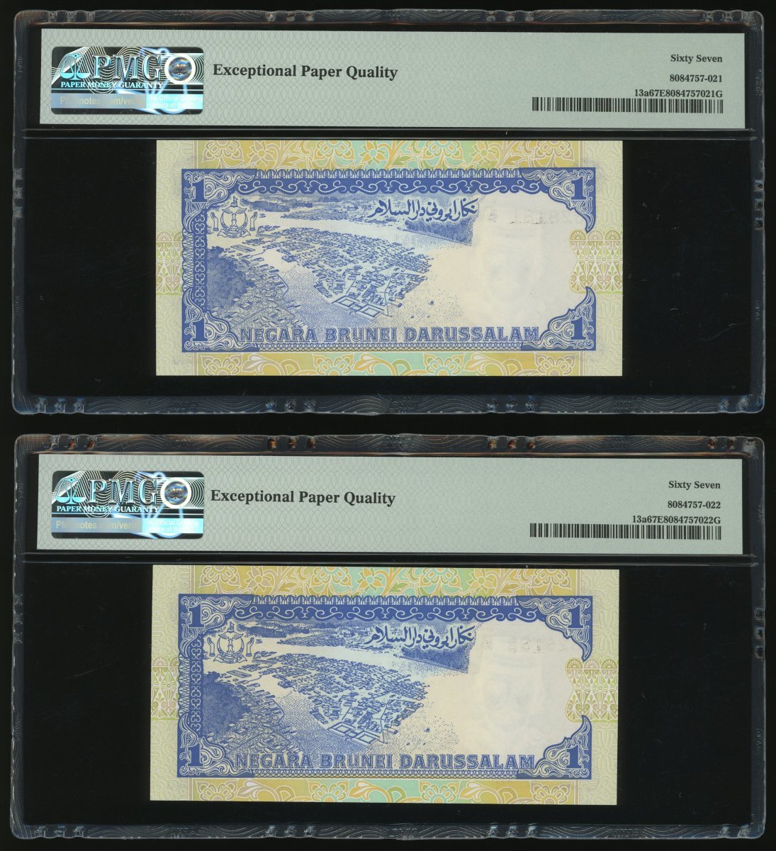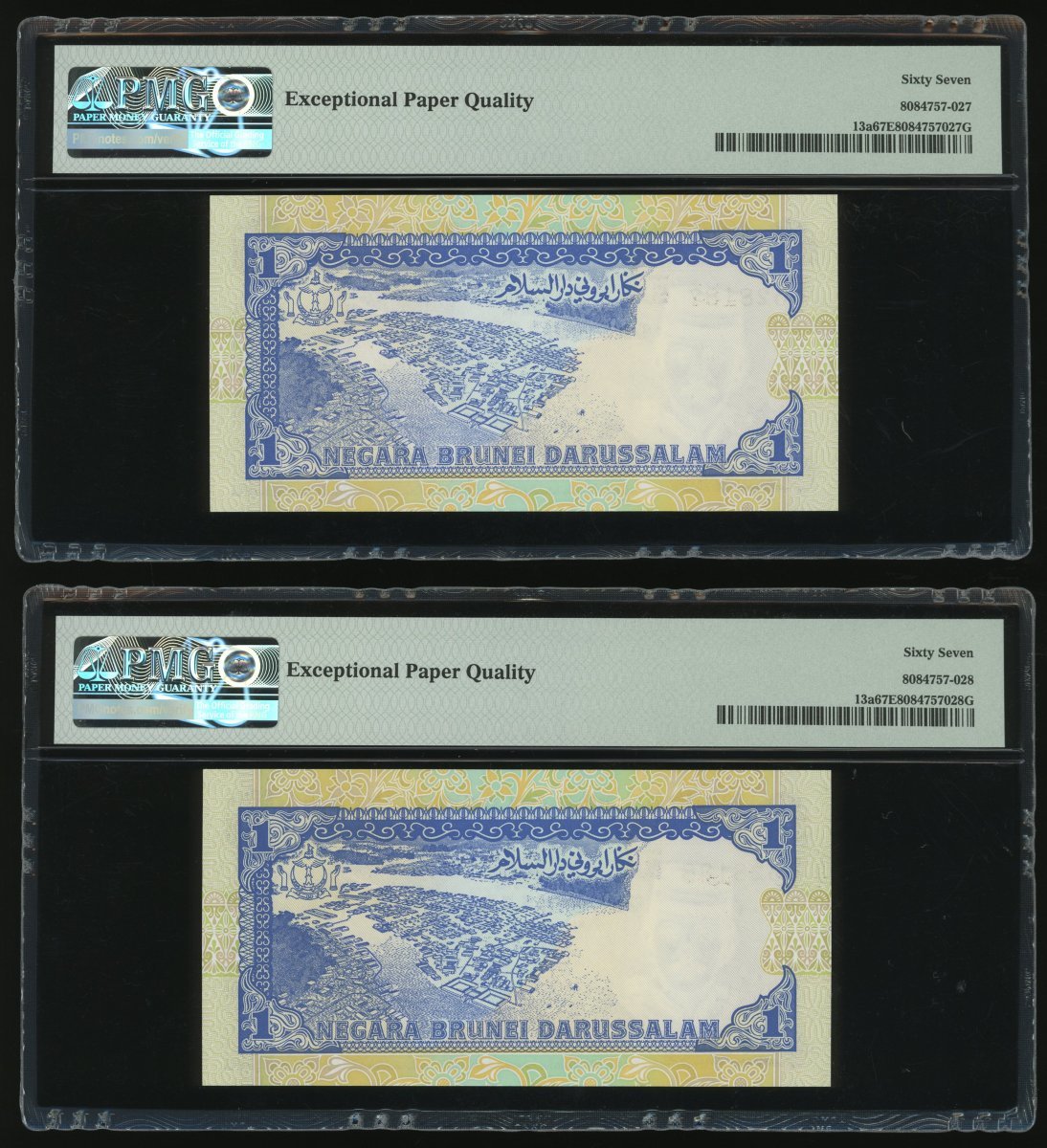 Negara Brunei Darussalam, 10x 1 Ringgit, 1989, consecutive serial numbers B/3 528181-190, (Pick 13a), all graded PMG 67EPQ except for the second last note graded 66EPQ (10)