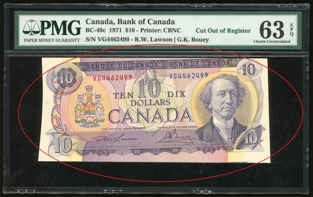 (BC-49c), PMG 63EPQ Choice Uncirculated 'Cut Out of Register' giving the appearance of an error note