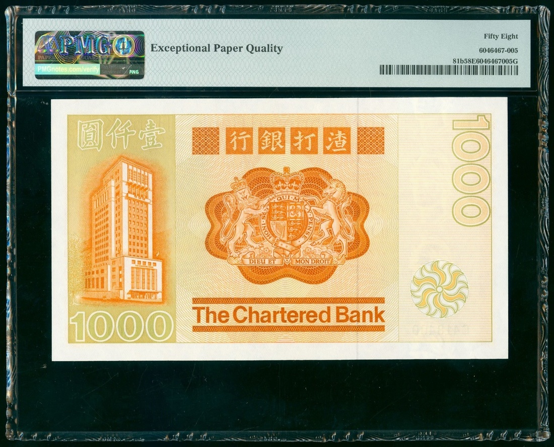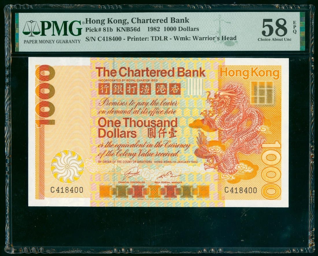 1982年渣打銀行$1000,編號C418400,PMG 58EPQ,熱門版別