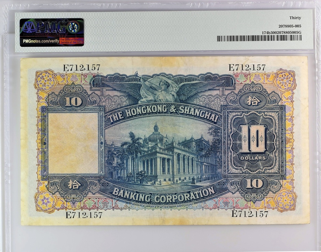 1913年香港上海匯豐銀行$10,編號E712157,PMG 30,罕見年份美品