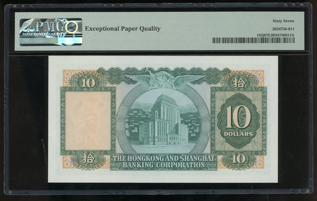 1983年香港上海匯豐銀行$10,幸運號H/54 888888,PMG 67EPQ
