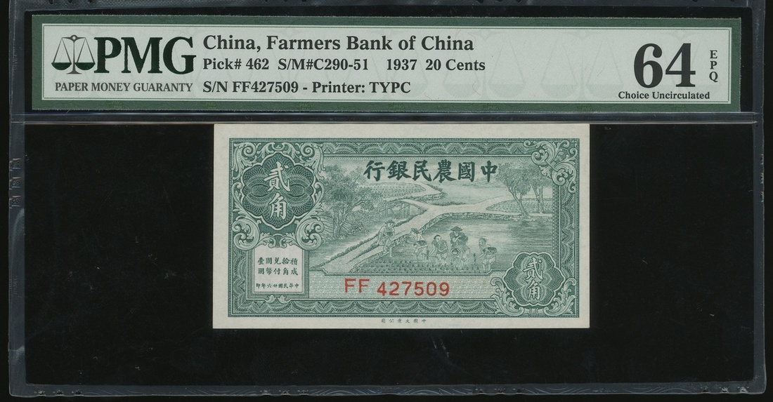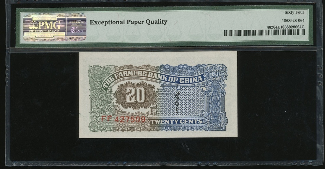 1937年中國農民銀行2角,編號FF427509,PMG 64EPQ