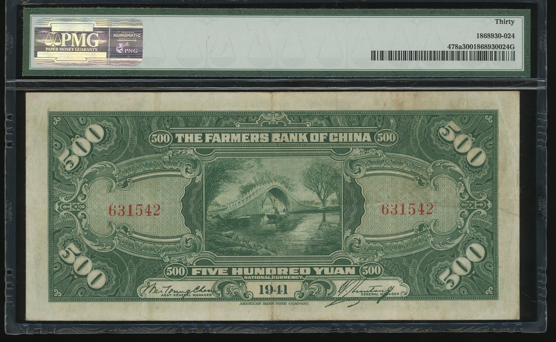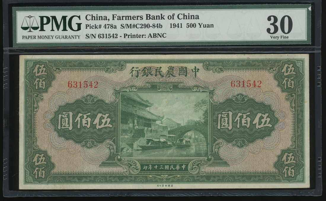 Farmers Bank of China, 500 yuan, year 30 (1941), serial number 631542, printed by ABNC,