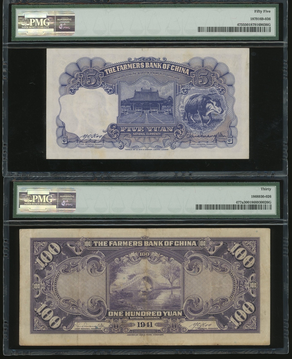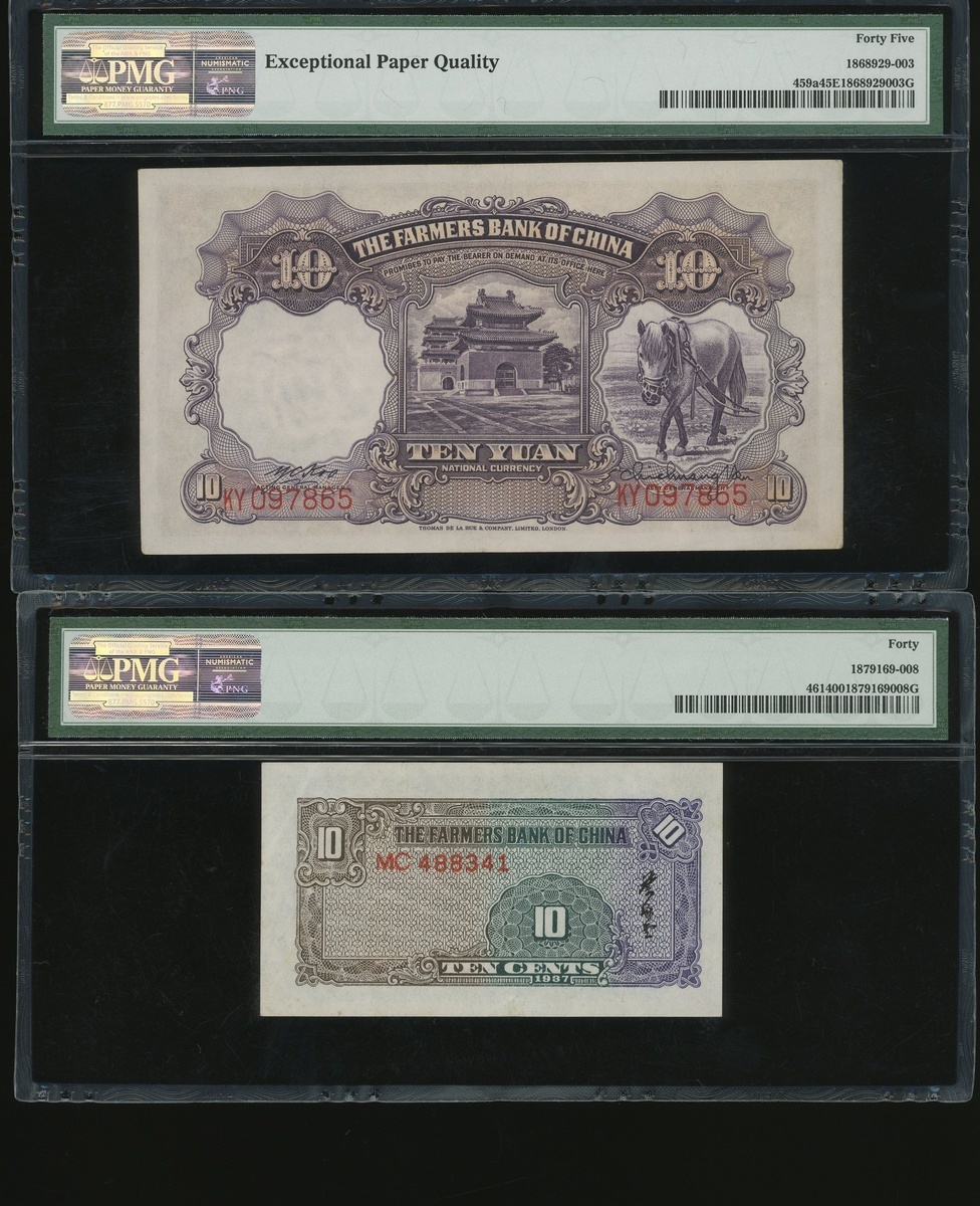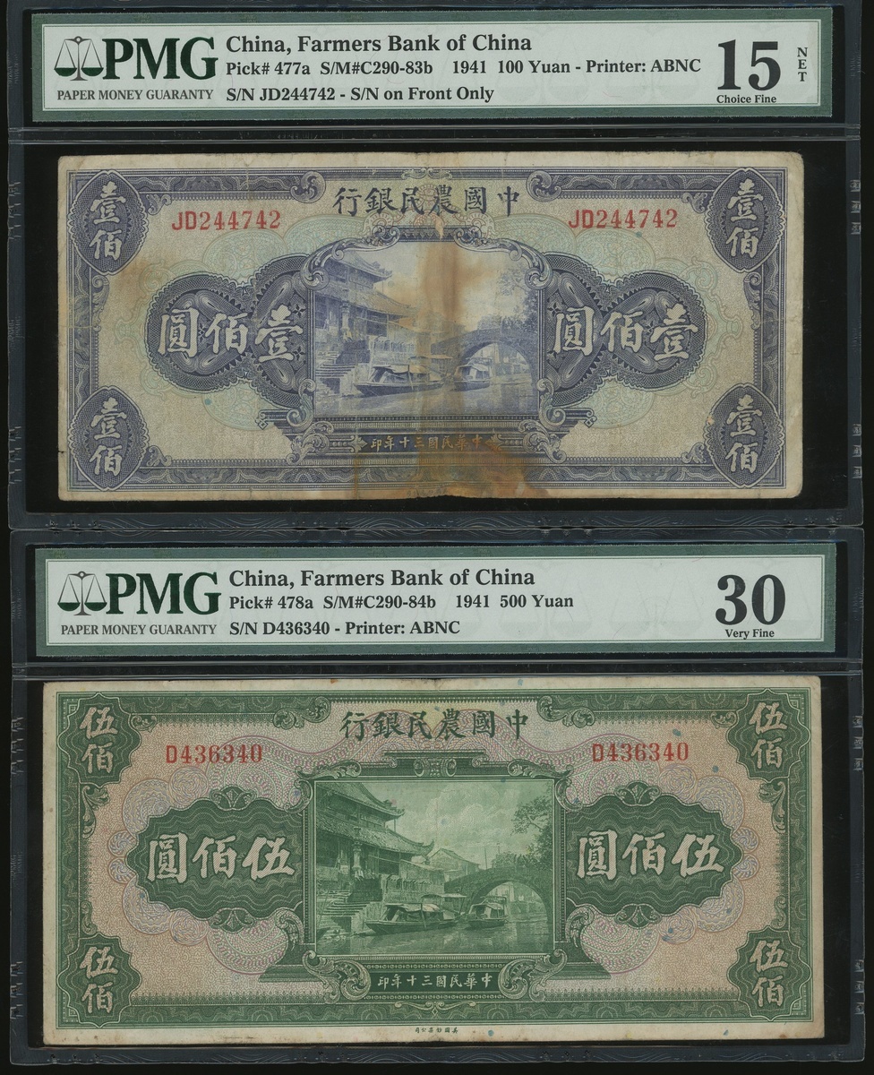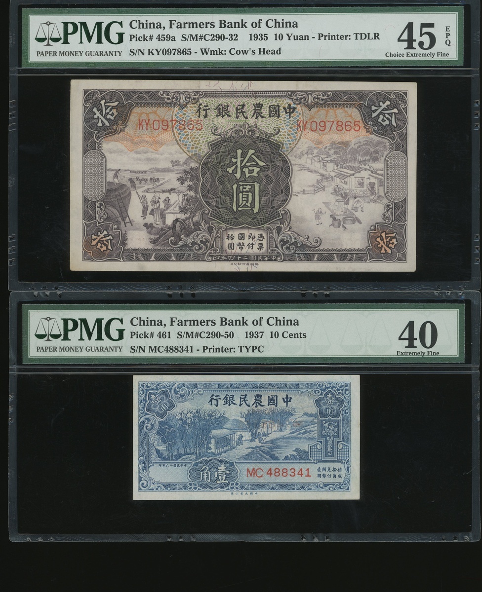 Farmers Bank of China, a group of 12x notes, 10 cents to 500 yuan, Year 24(1935) -Year 30(1941) consists of different types,