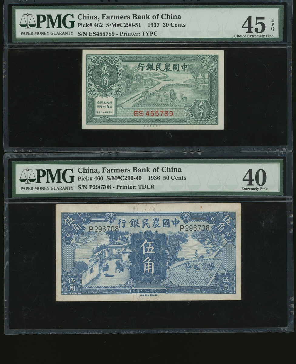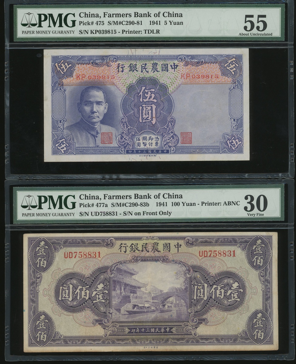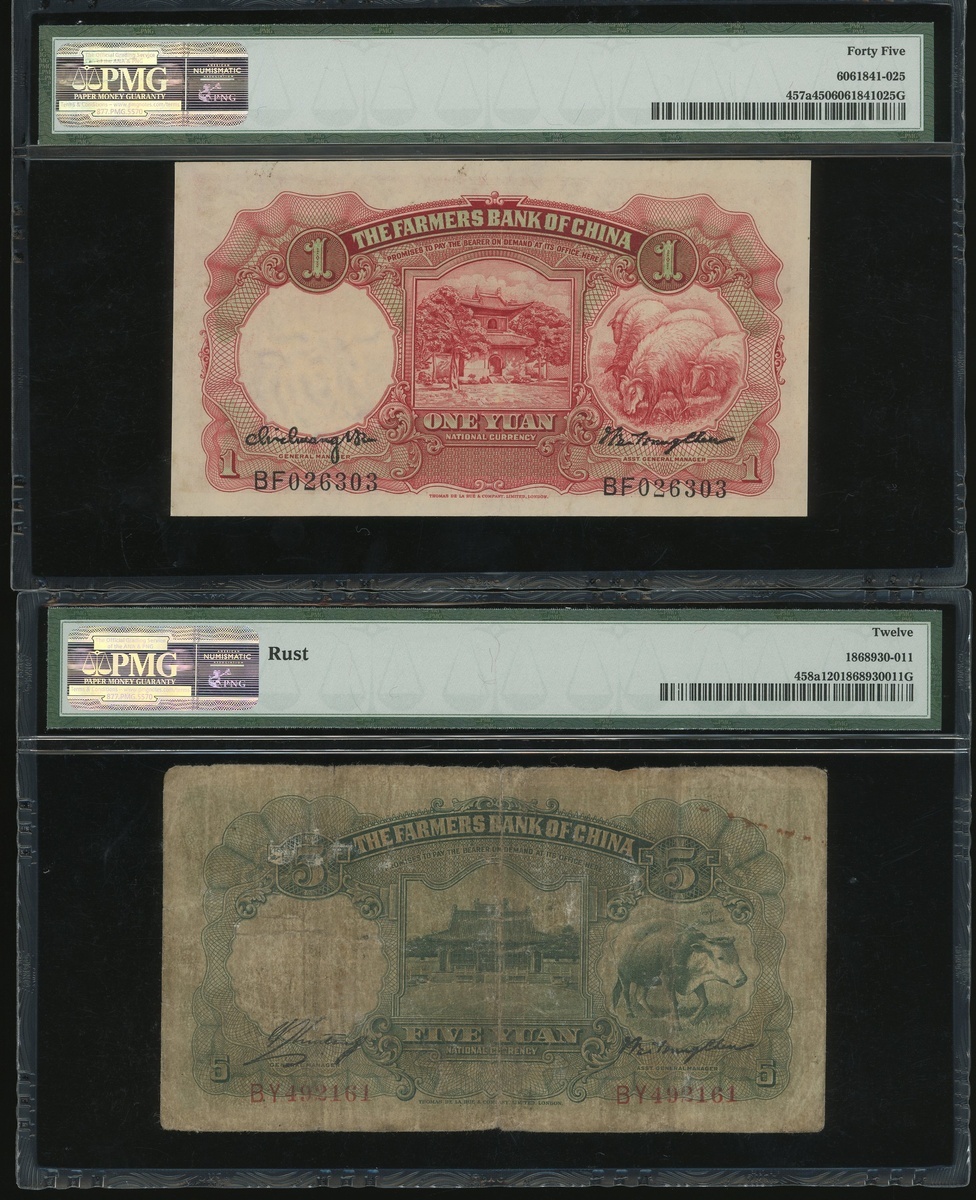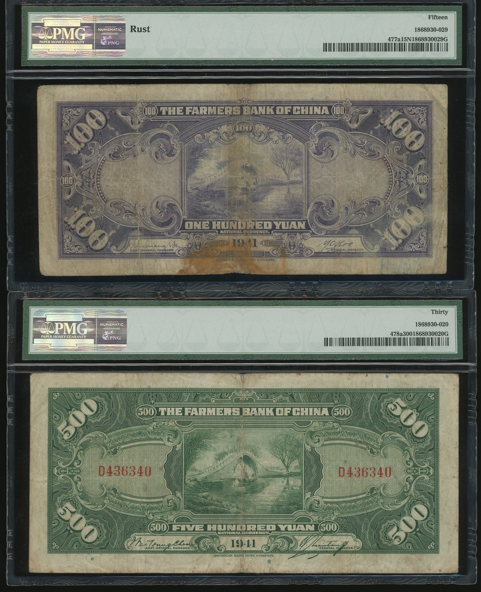 Farmers Bank of China, a group of 12x notes, 10 cents to 500 yuan, Year 24(1935) -Year 30(1941) consists of different types,