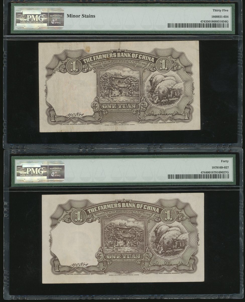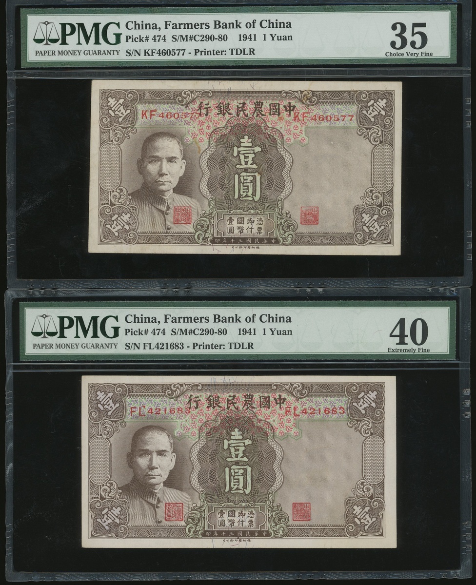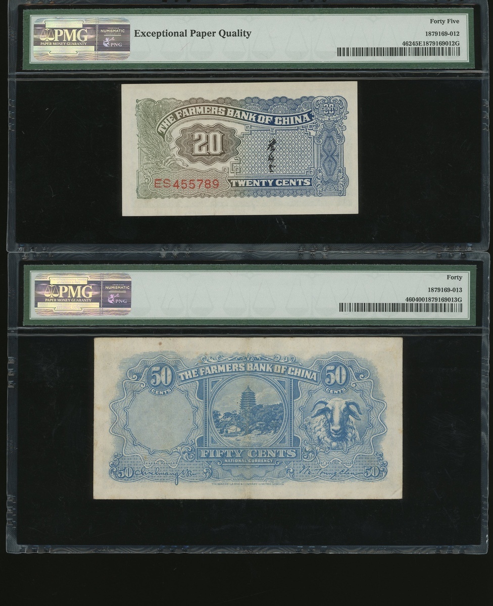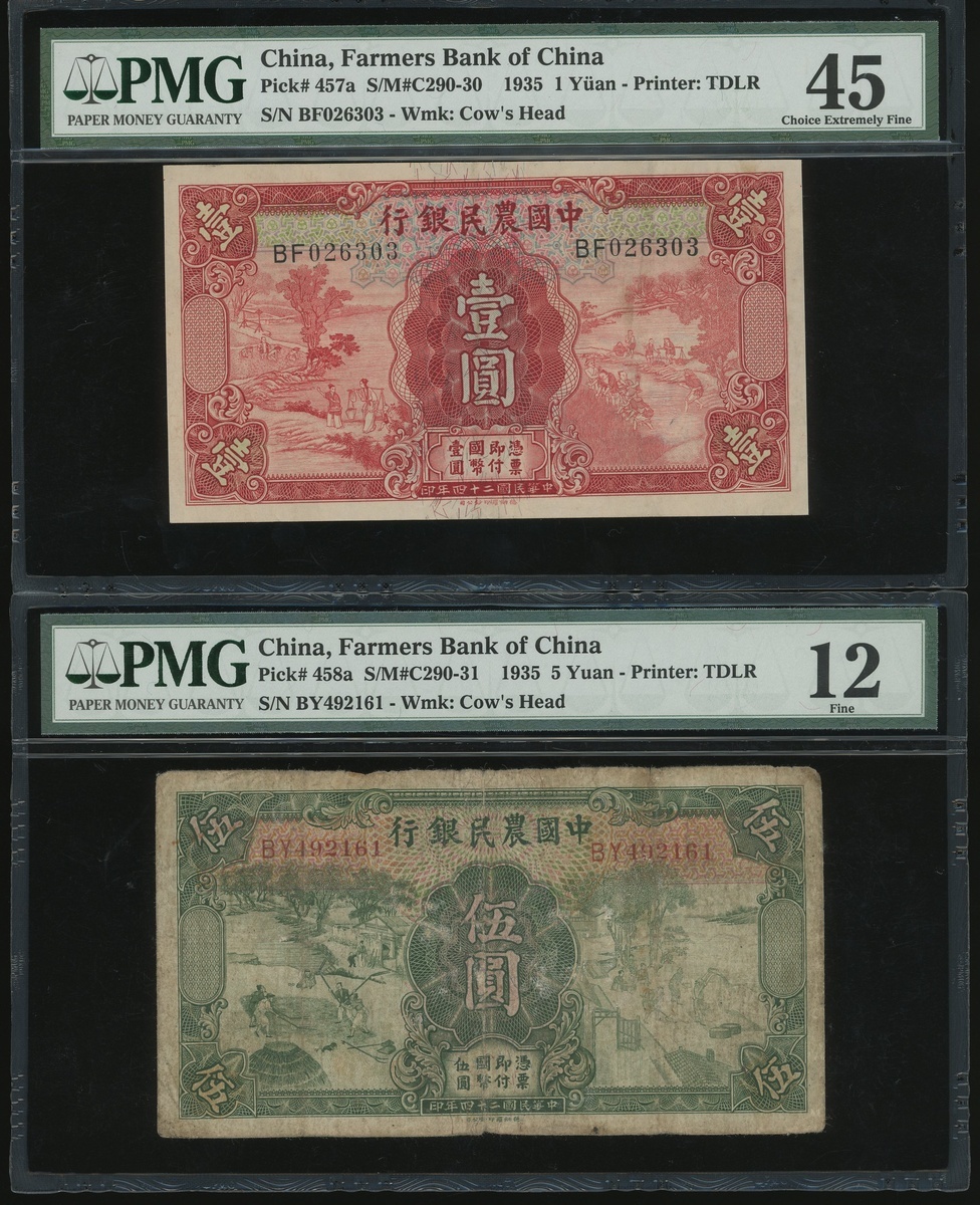Farmers Bank of China, a group of 12x notes, 10 cents to 500 yuan, Year 24(1935) -Year 30(1941) consists of different types,