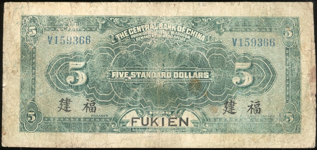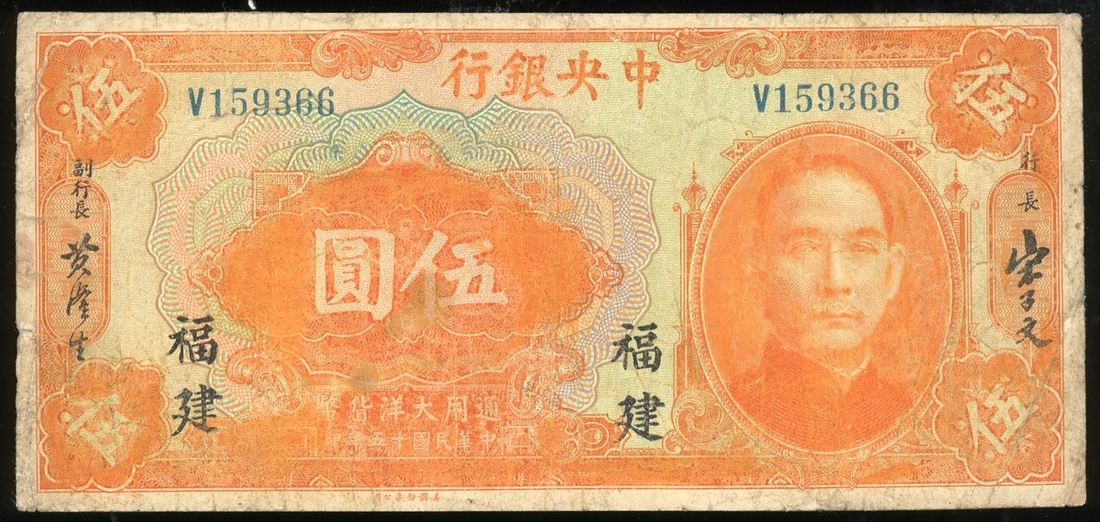 The Central Bank of China, $5, Fukien, Year 15(1926), serial number V159366, (Pick 183b), very fine.
