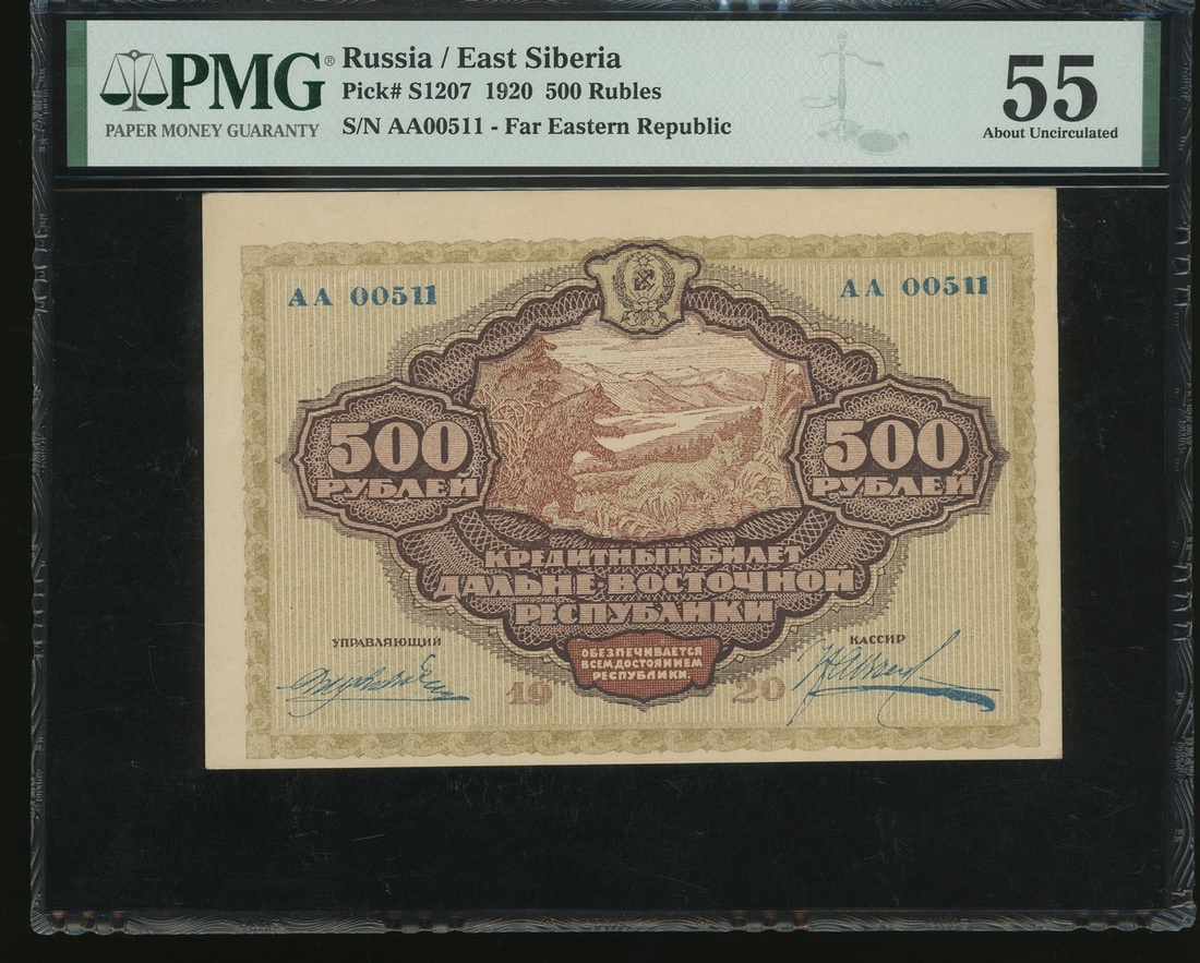 1919-41年俄羅斯與塞爾維亞紙鈔一組三枚,包括1920年東西伯利亞500盧布,分別評PMG 58(輕輕微修補補), 55 及 55EPQ