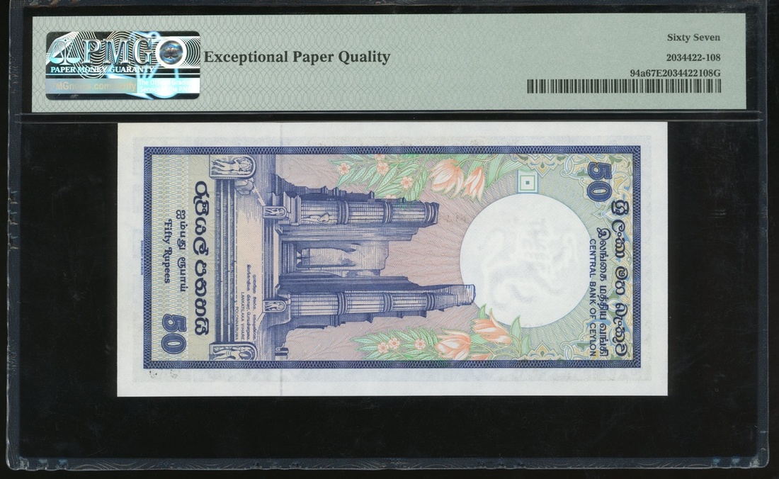 1982年斯里蘭卡50盧比,編號 H/10 783959,PMG 67EPQ