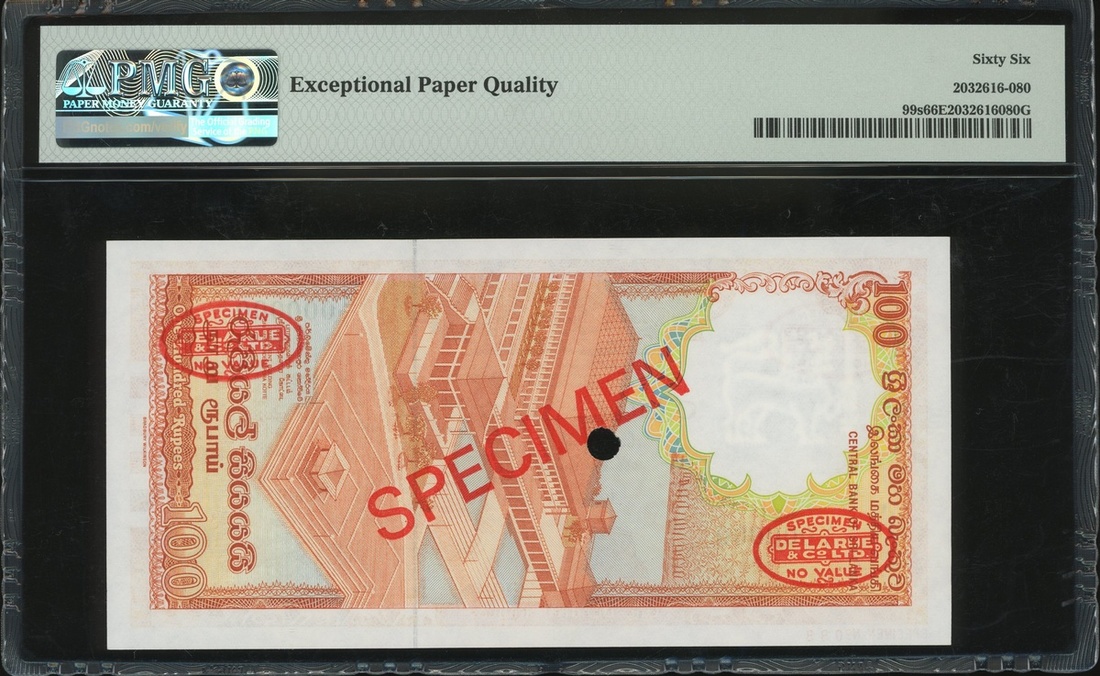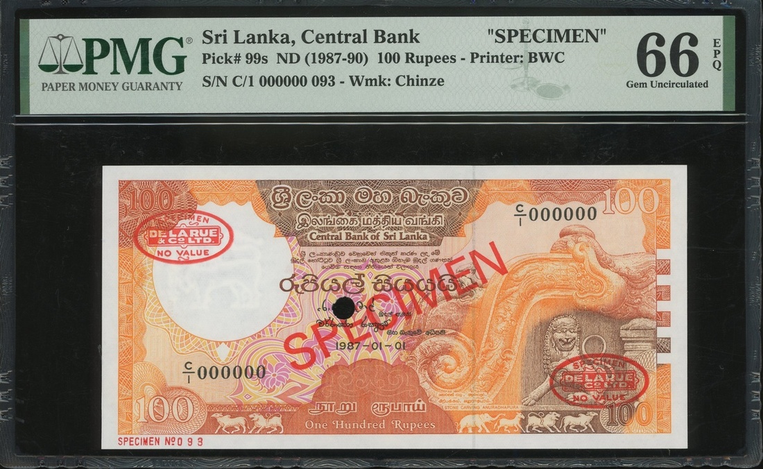 1987年斯里蘭卡中央銀行100盧比樣票,編號C/1 000000,PMG 66EPQ