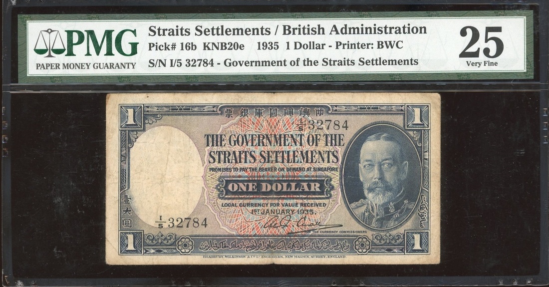 1935年海峽殖民地1元,編號I/5 32784,PMG 25