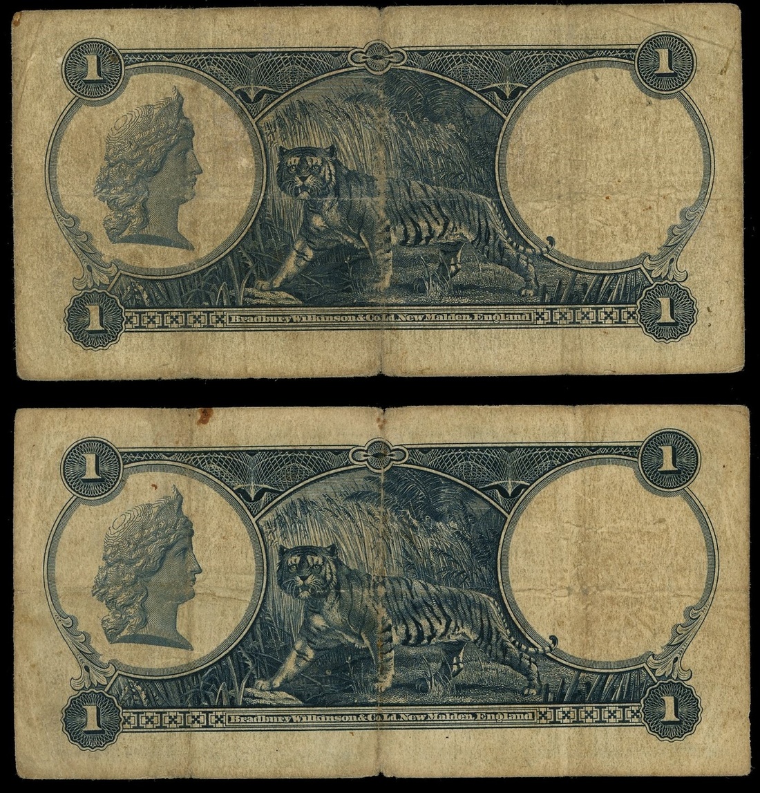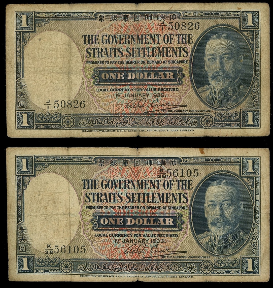 1935年海峽殖民地1元一對,編號K/38 56105 及 J/1 50826,VG至F品相