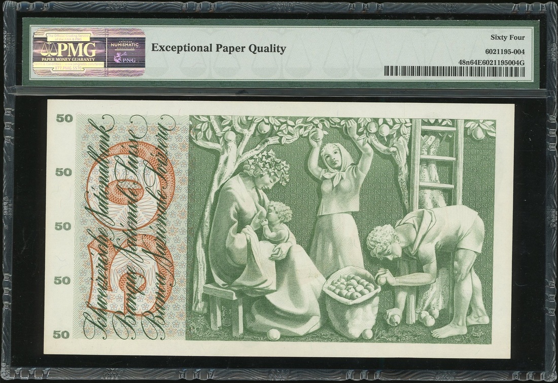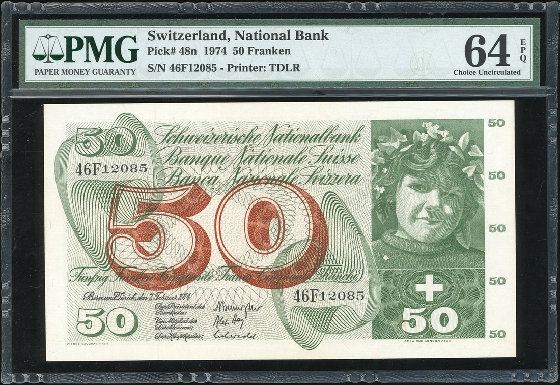 1974年瑞士50法郎,編號46F12085,PMG 64EPQ