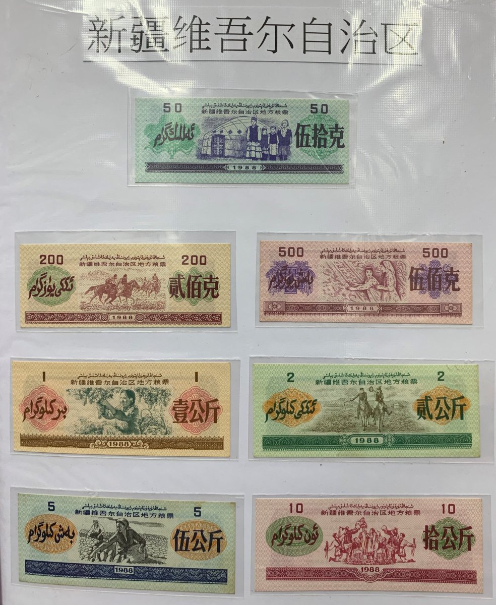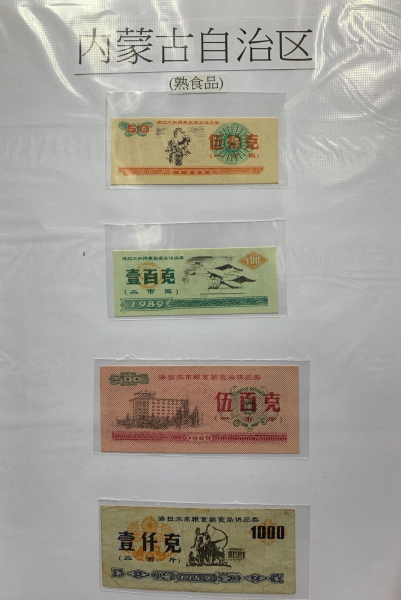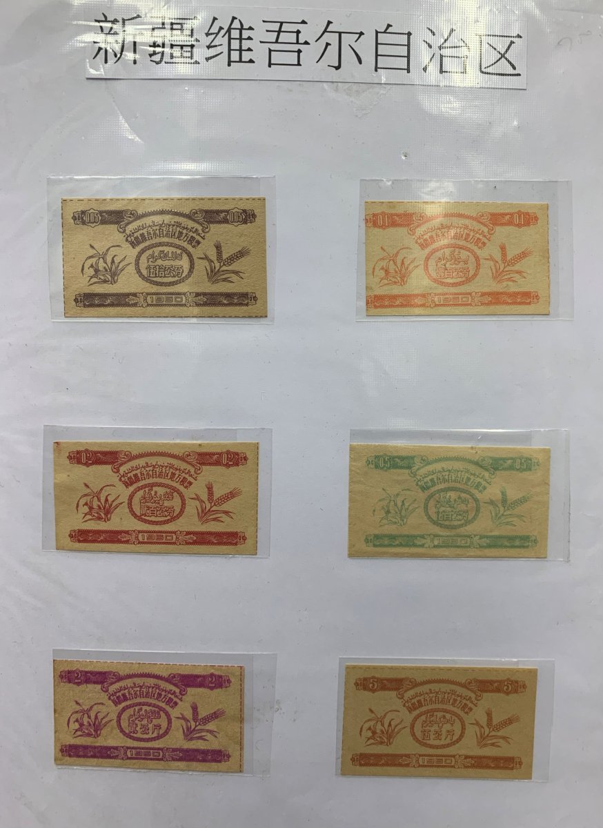 中國糧票一組約1588枚,各種地區發行票,包括新疆,寧夏,甘肅,青海,内蒙古,吉林,黑龍江,遼寧,河北,山東,天津,河南,四川,江西及廣西,保存完好