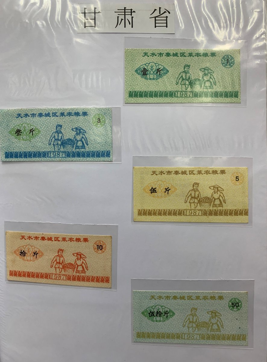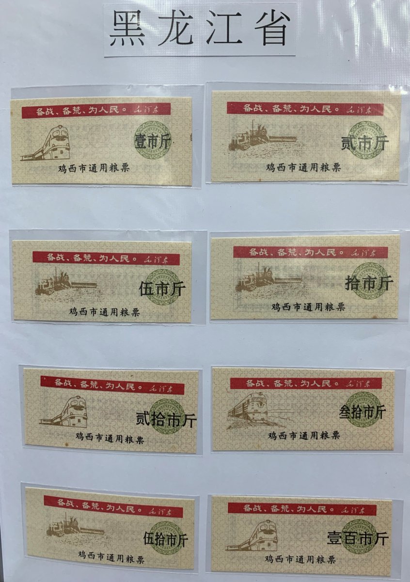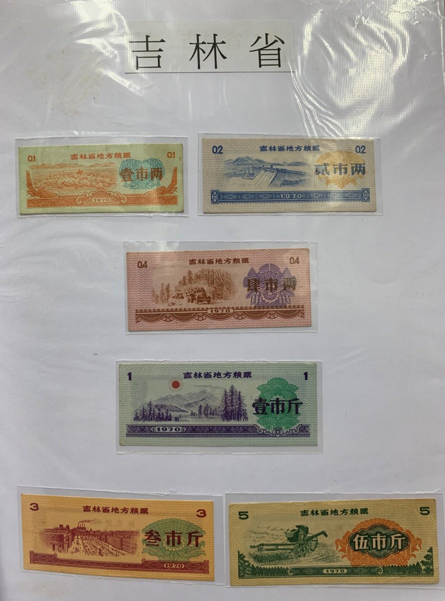 中國糧票一組約1588枚,各種地區發行票,包括新疆,寧夏,甘肅,青海,内蒙古,吉林,黑龍江,遼寧,河北,山東,天津,河南,四川,江西及廣西,保存完好