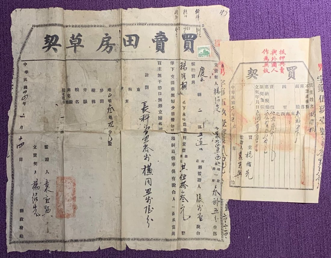 China, a land purchase contract in Qingyu County, 1935, with stamp duty, well preserved