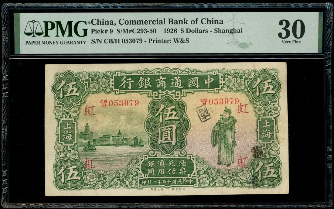 Commercial Bank of China, $5, Shanghai, Year 15(1926), serial number CB/H 053079, (Pick 9), PMG 30 Very Fine (Ink Stamps).