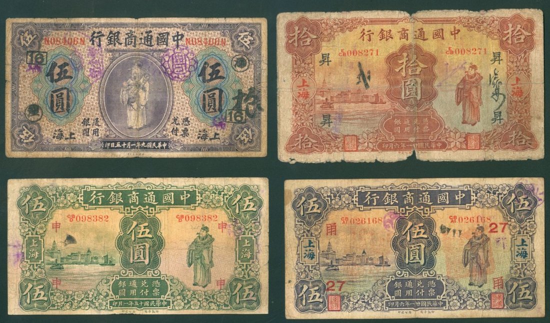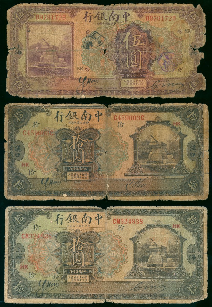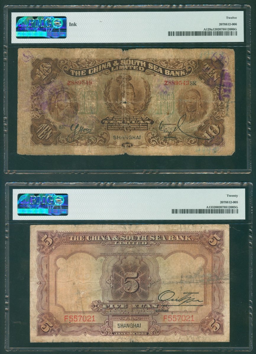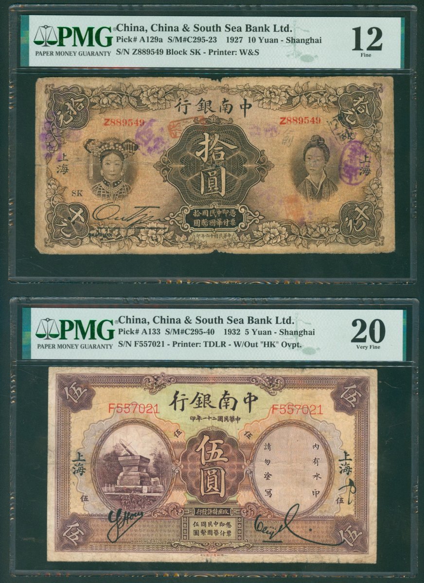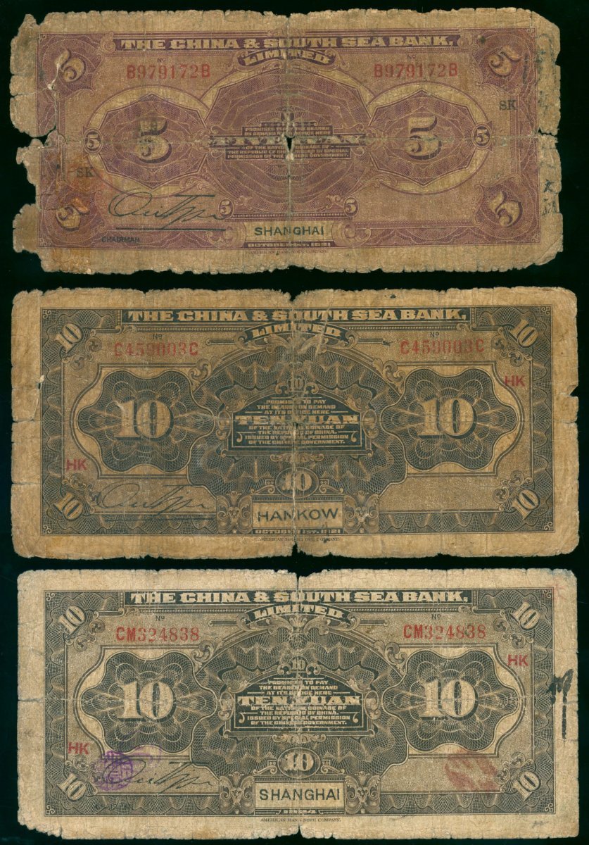 2. China and South Sea Bank Limited: 5 yuan, 1921, 1927 (2) and 1932, Shanghai, 10 yuan, 1924, 1927, Shanghai and 1921, Hankow