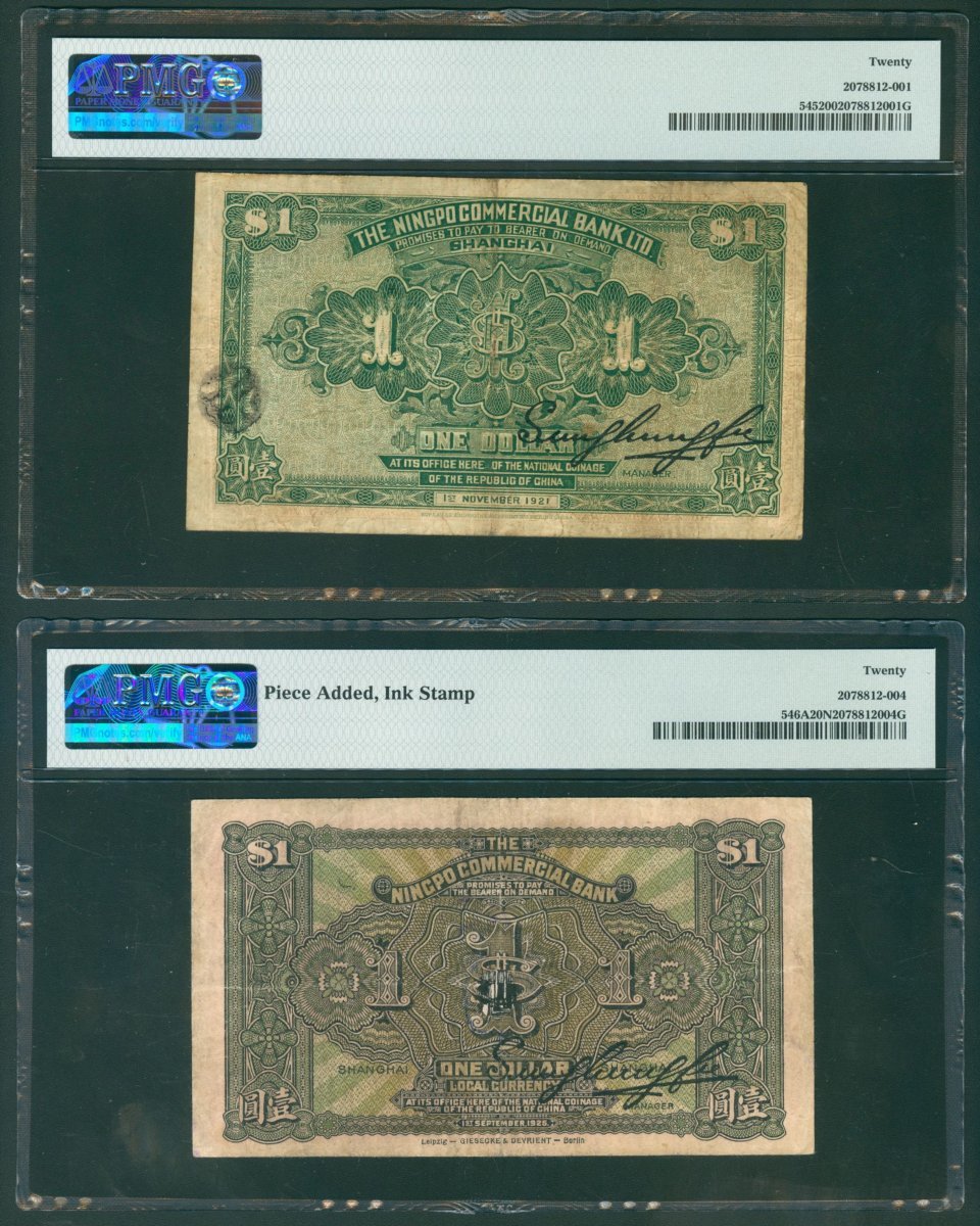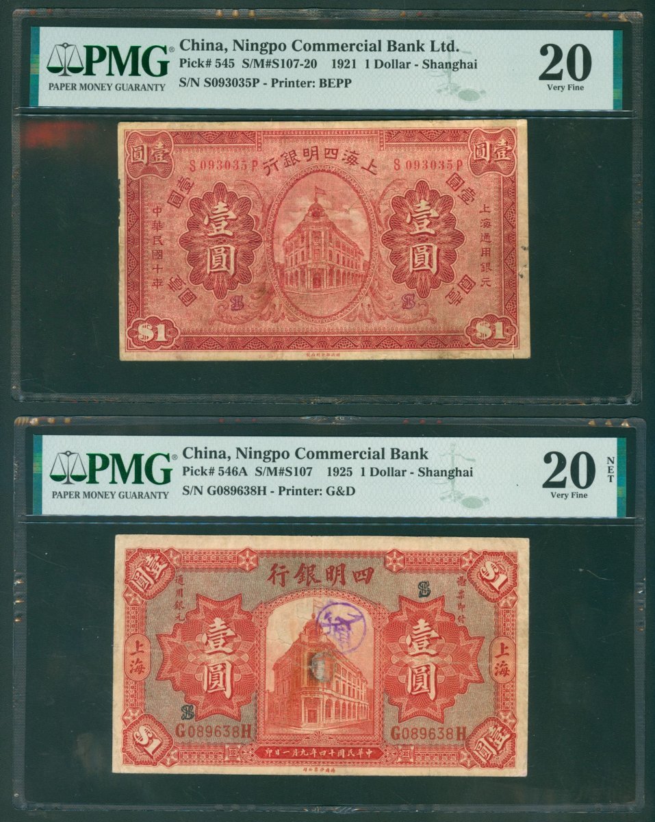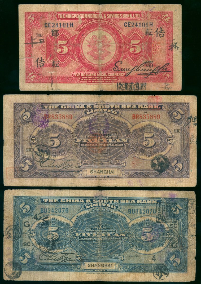 3. Ningpo Commercial Bank Limited: 1 yuan, 1921 and 1925 Shanghai, 5 yuan, 1920, Shanghai,