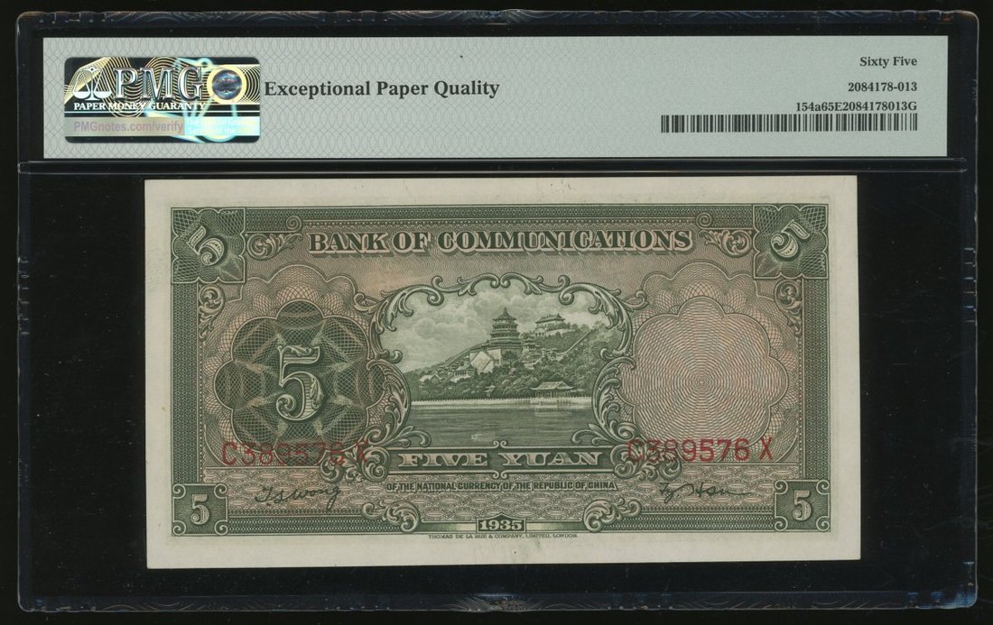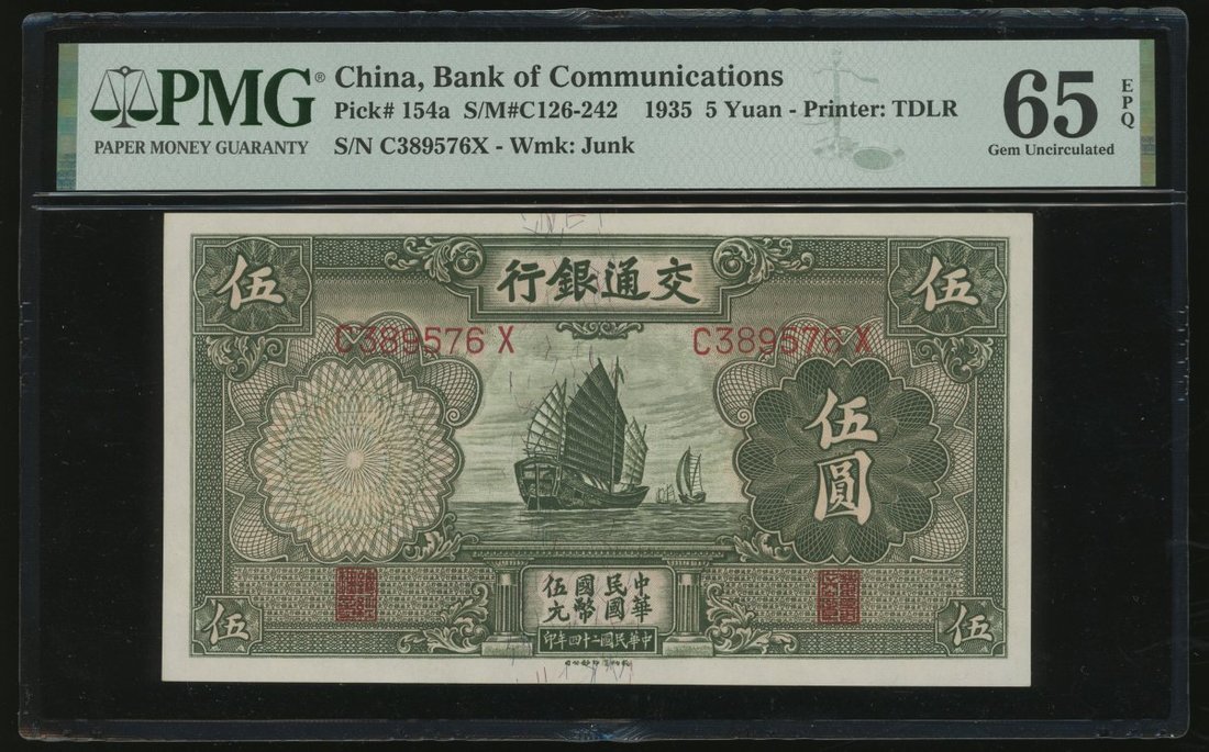民國二十四年(1935)交通銀行伍圓,編號C389576X,PMG 65EPQ