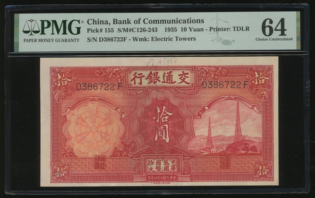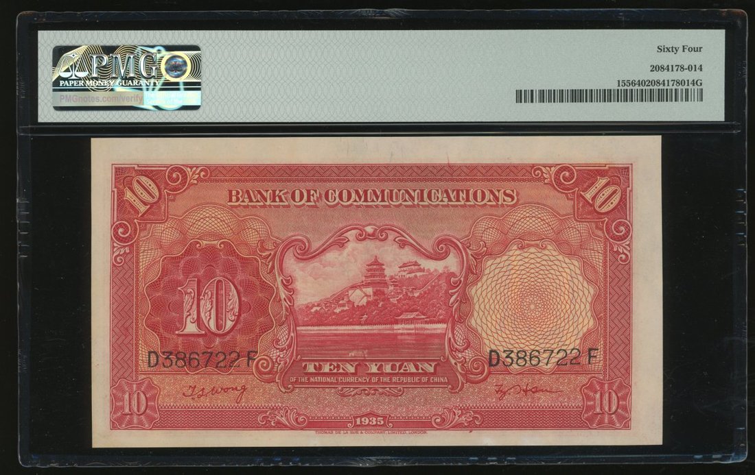 民國三十年(1941)交通銀行拾圓,編號D427180,PMG 64