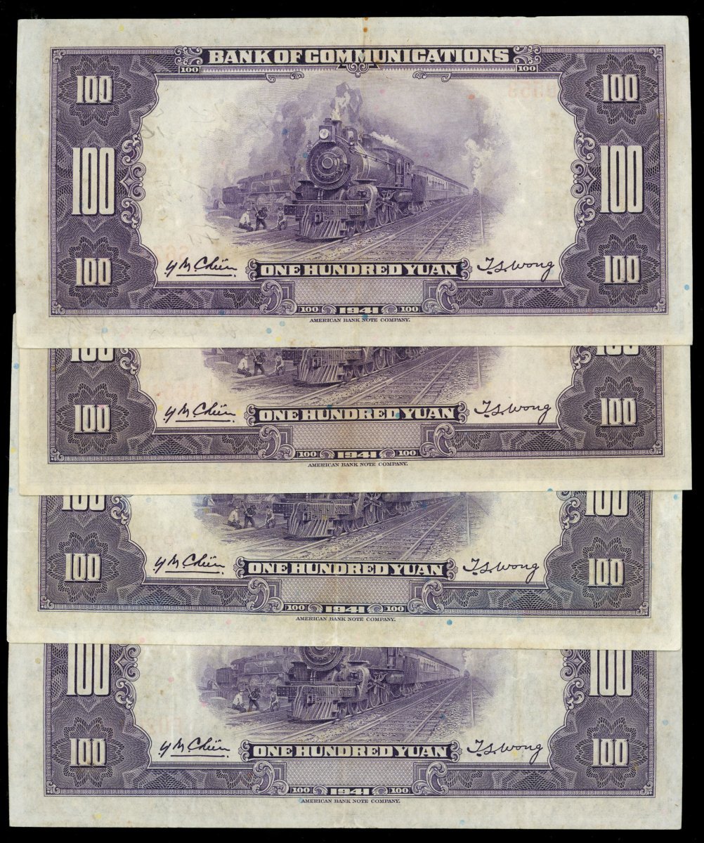 Bank of China, lot of 4x 100yuan, 1941, good very fine to extremely fine (4)