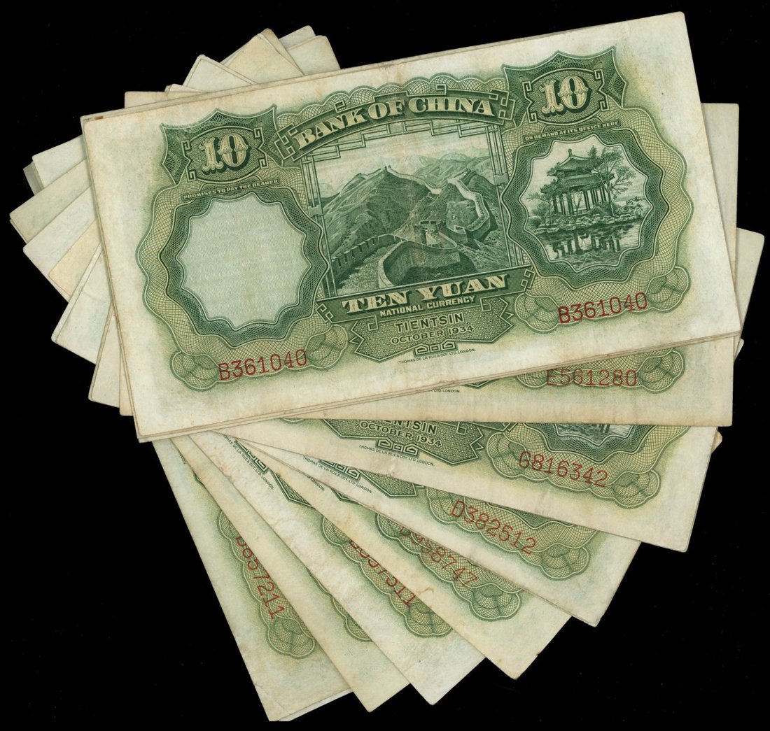 Bank of China, group of 15x 10 yuan, Tientsin, 1934, good very fine or better (15)