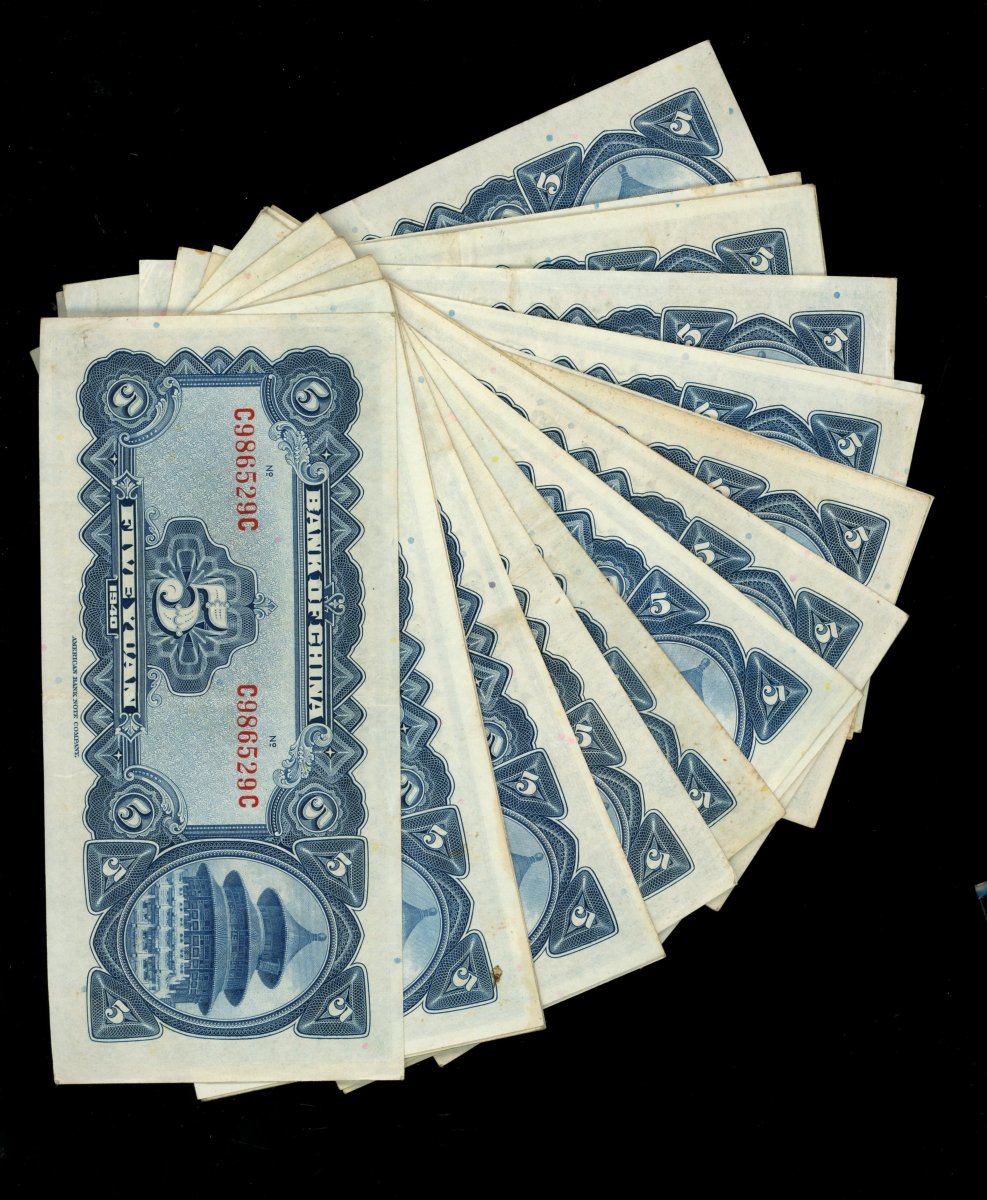 Bank of China, group of 21x 5 yuan, 1940, good extremely fine or better (21)