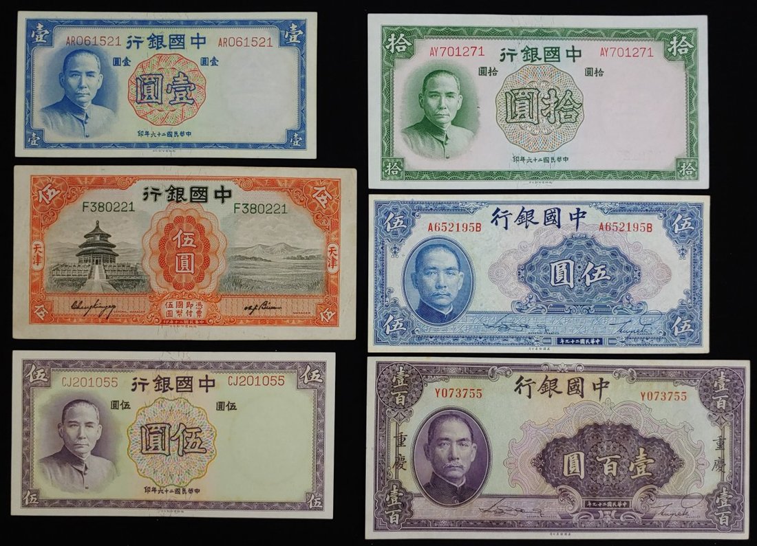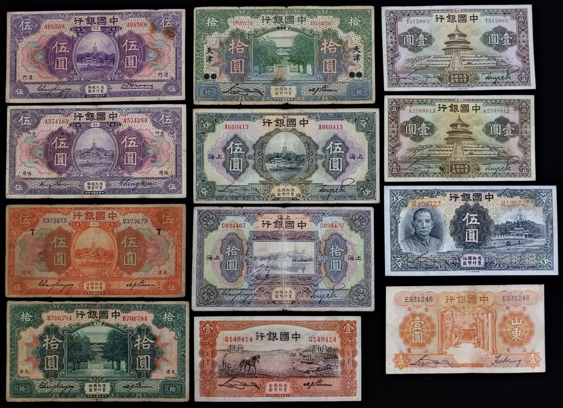 1918至40年中國銀行一組18枚,當中不乏較熱門之版別,包括1918年、1924年及1926年伍圓及拾圓,早期票F或以上品相,較晚期的則EF或以上品相,建議預覽