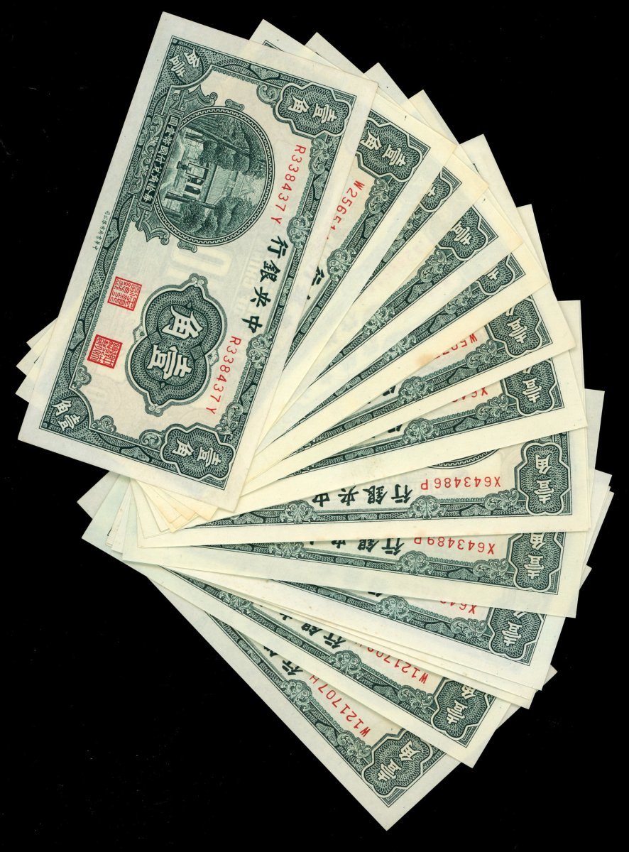民國二十年(1931)中央銀行壹角一組19枚,UNC,若干連號,數枚有輕微處理痕跡,帶微黃