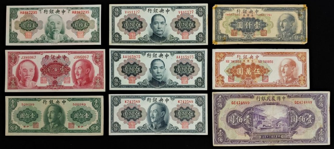 中央銀行1940年代中央銀行一組32枚,包括1931年貳拾伍分等,另有一枚1941年中國農民銀行壹百圓,整體達GEF或以上品相,建議預覽
