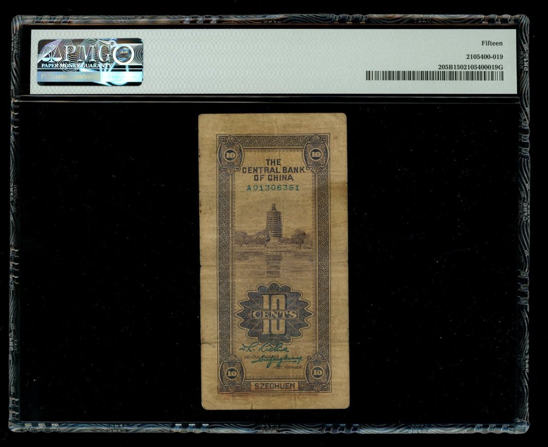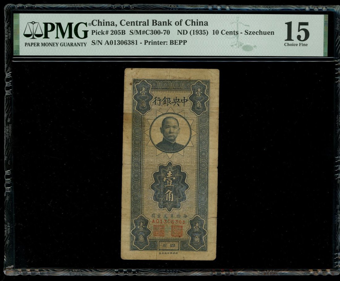 The Central Bank of China, 10 cents, Szechuan, ND (1935), serial number A01306381, printed by the BEPP,