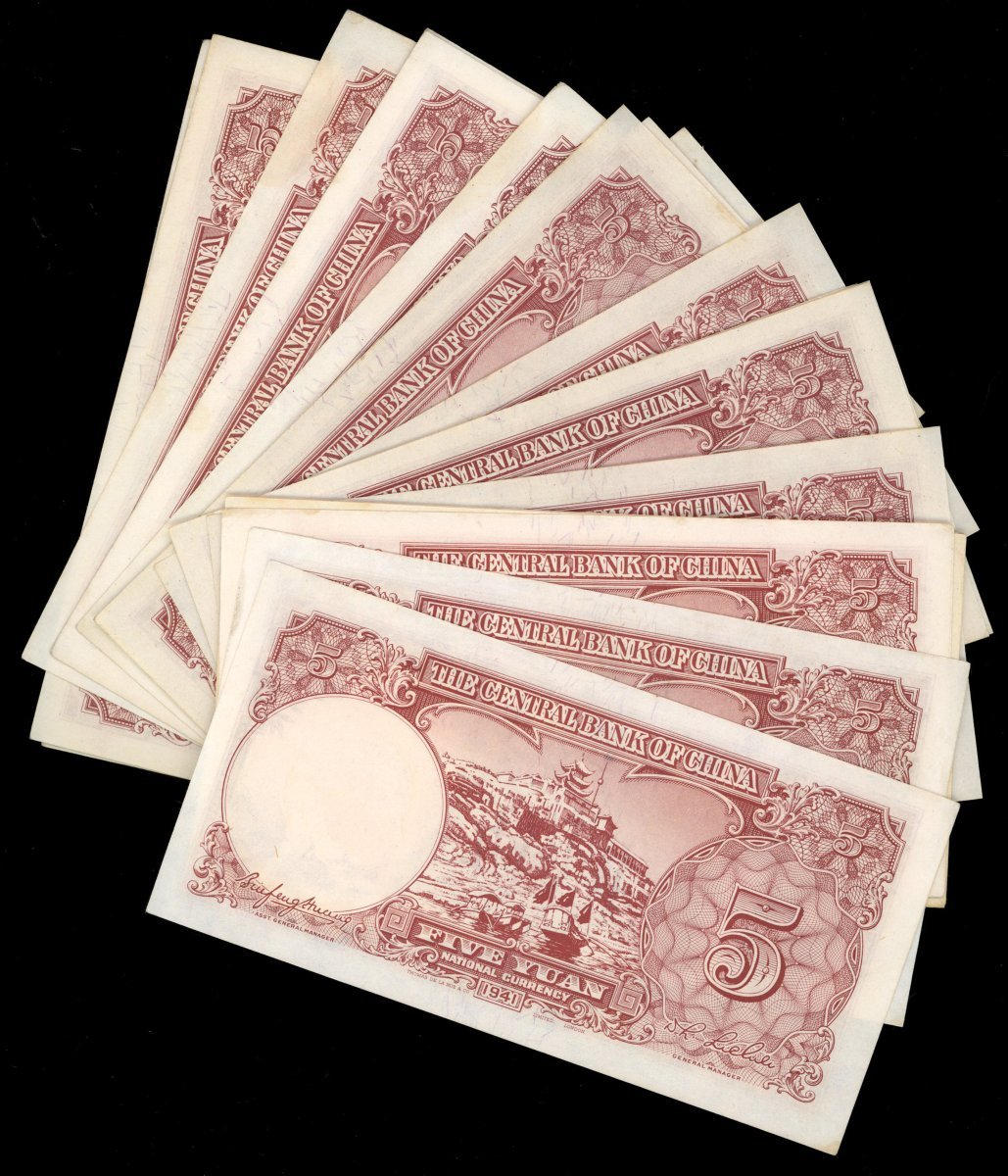 Central Bank of China, group of 23x 5 yuan, 1941, uncirculated or near so, light handling marks, very mild toning (23)