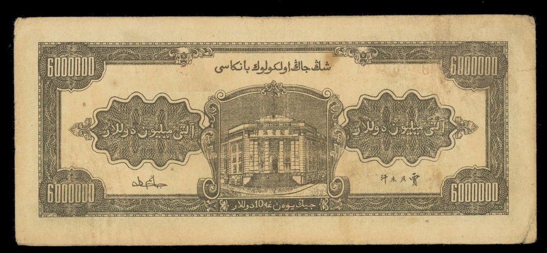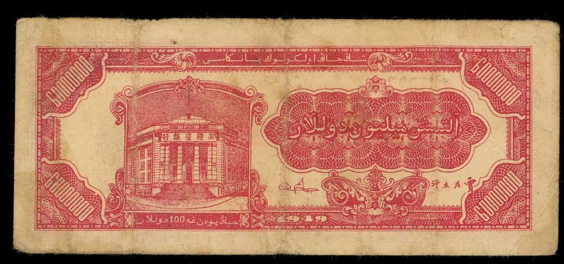 民國三十七年(1948)新疆省銀行陸佰萬圓,AB469711,AVF,有黃