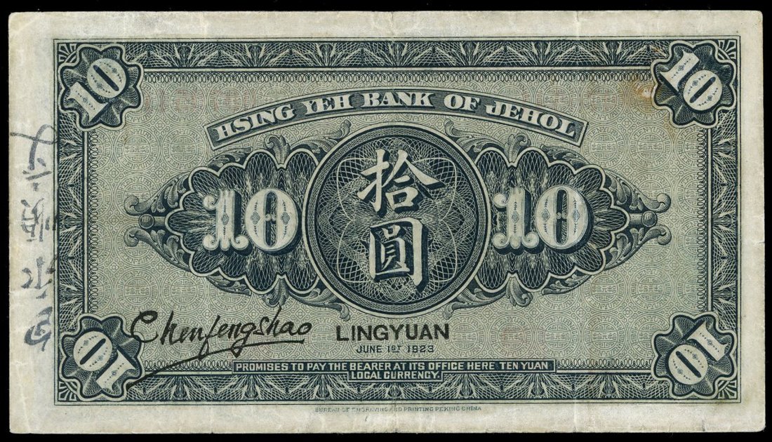 Hsing Yeh Bank of Jehol, 5 Yuan, Lingyuan, 1923, serial number 0070541, (Pick S2185c), pressed very fine, rare.