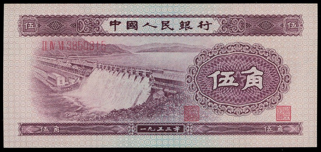 People's Bank of China, 2nd series renminbi, 1953, 1, 2 and 5 jiao, serial numbers IX X III 7062051, IX VII V 4350849 and II IV VI 3850315,