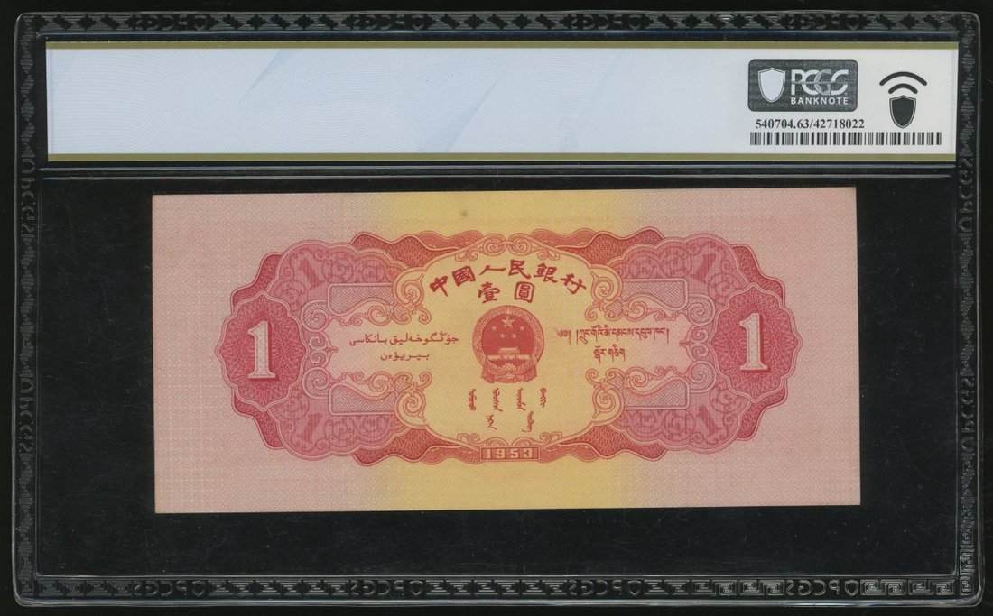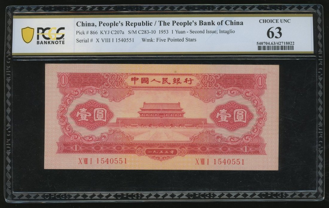 1953年中國人民銀行第二版人民幣紅壹圓,編號X VIII I 1540551,PCGS Banknote 63